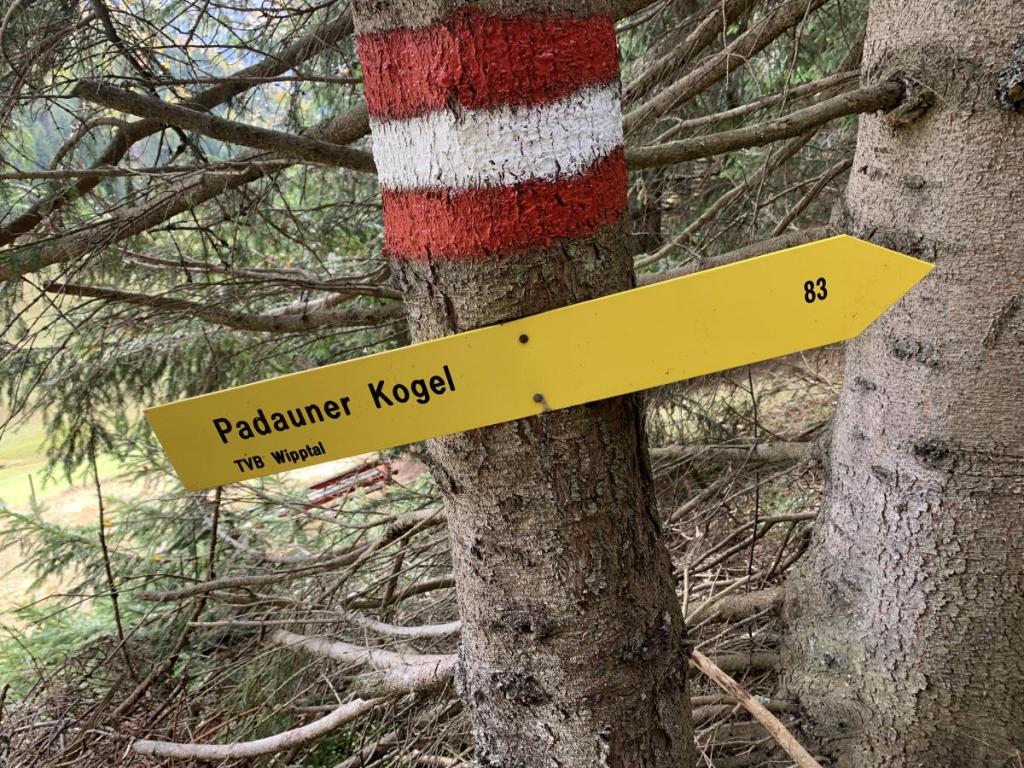 Beim Larchenhof zweigen wir von der Straße ab und folgend dem steilen Aufstieg auf den Padauner Kogel, Wegenummer 83.