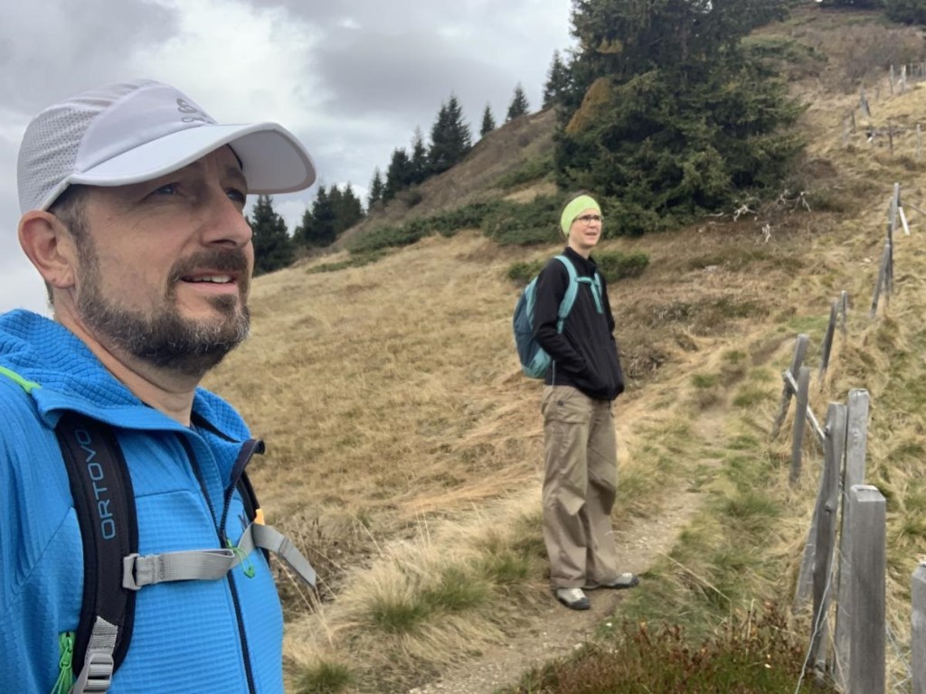 Heute habe ich mir frei genommen, um einen feinen Tag mit Biggi zu verbringen. Das Wetter ist zumindest trocken, und die Sonne lugt ab und zu zwischen den Föhnwolken hervor. Wir wollen heute dem Padauner Kogel einen Besuch abstatten. Wir parken direkt in Padaun, oberhalb vom Gasthaus Steckholzer.