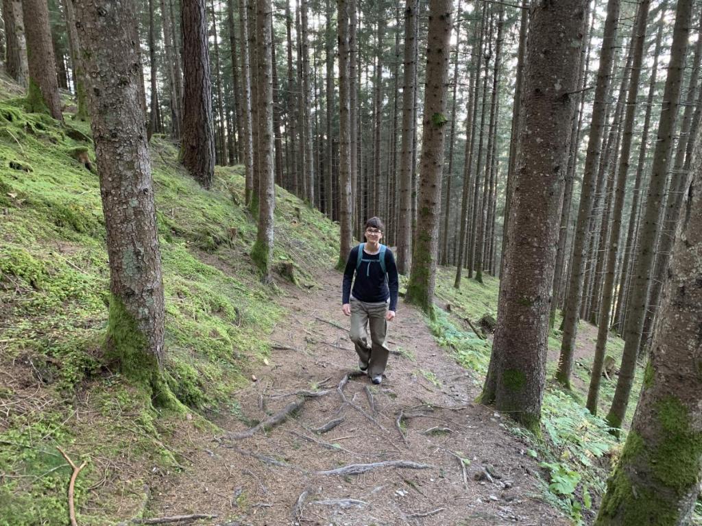 Zuerst schreiten wir durch abwechselnd lichten und dichten Wald, vorbei an leider schon älteren Parasolpilzen, immer weiter in die Höhe.