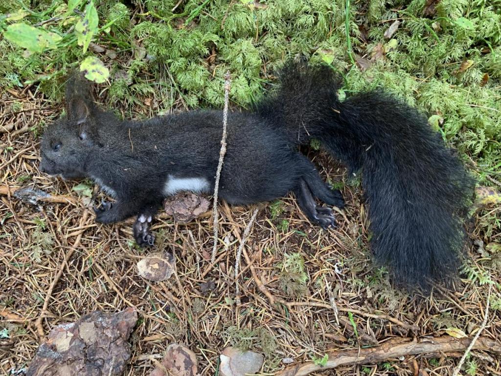 Im weiteren Verlauf entdecken wir ein totes Eichhörnchen auf dem Boden… es sieht aus, als ob es einfach umgefallen ist, keine Spuren eines äußeren Einflusses. Recht interessant, eines dieser putziger Dinger genauer betrachten zu können. Die Schwarzfärbung ist übrigens nur eine Farbvariante. Die Schwarzen keine eigene Art zum kastanienbraunen Eichhörnchen