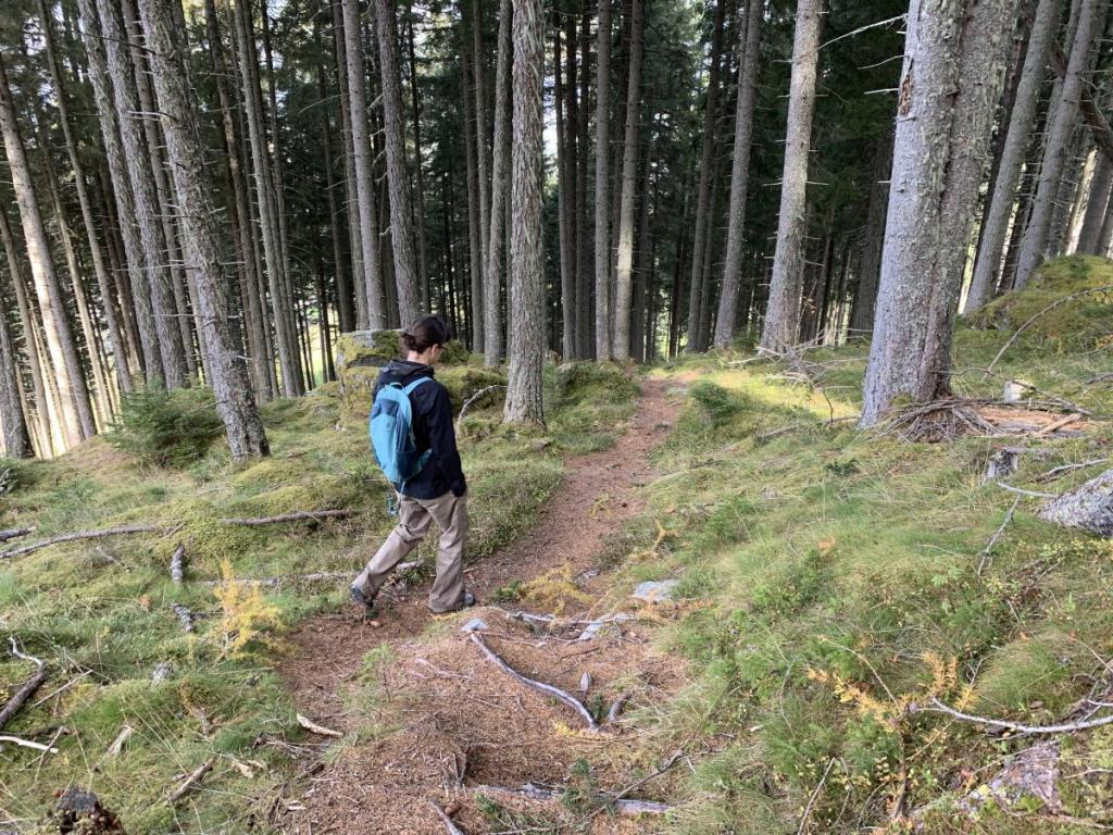 Der Aufstieg bis zur Rinner Alm führt hauptsächlich durch Wald, meist handelt es sich hierbei um Fichtenforst, mit dem für die Gegend typischen Moosböden.