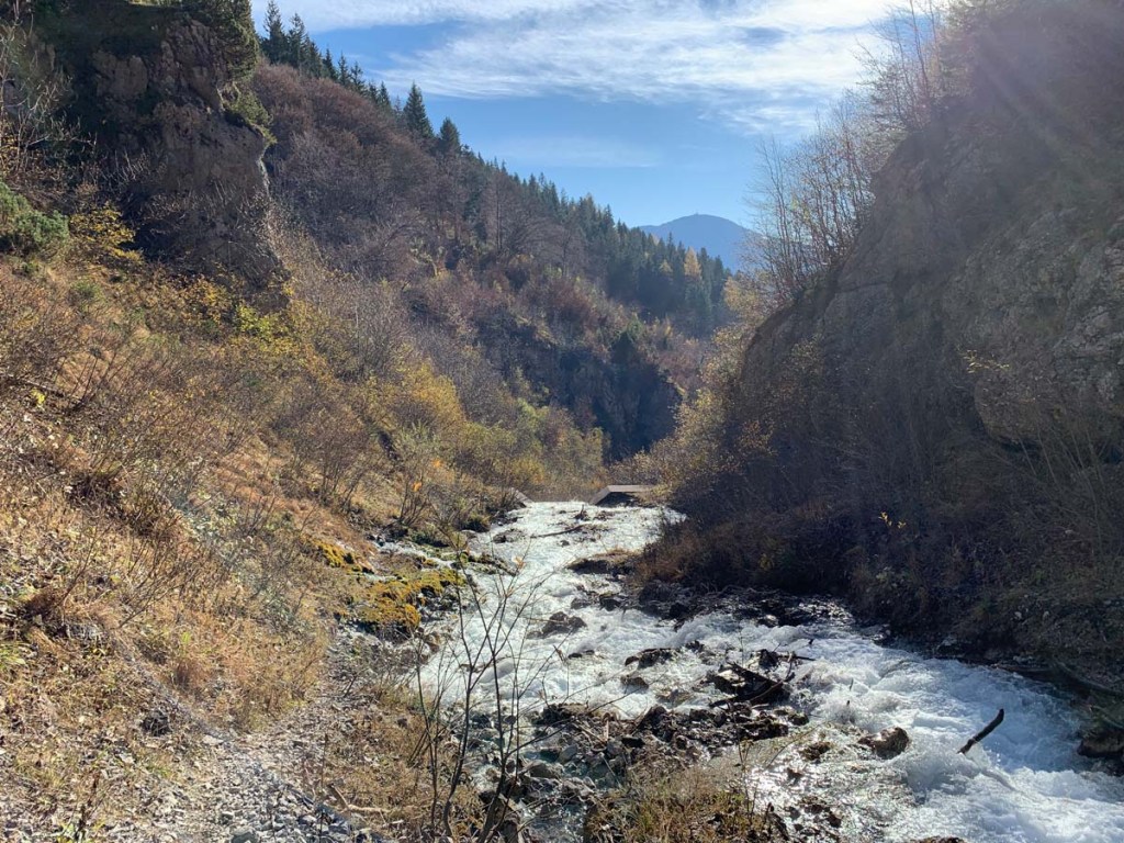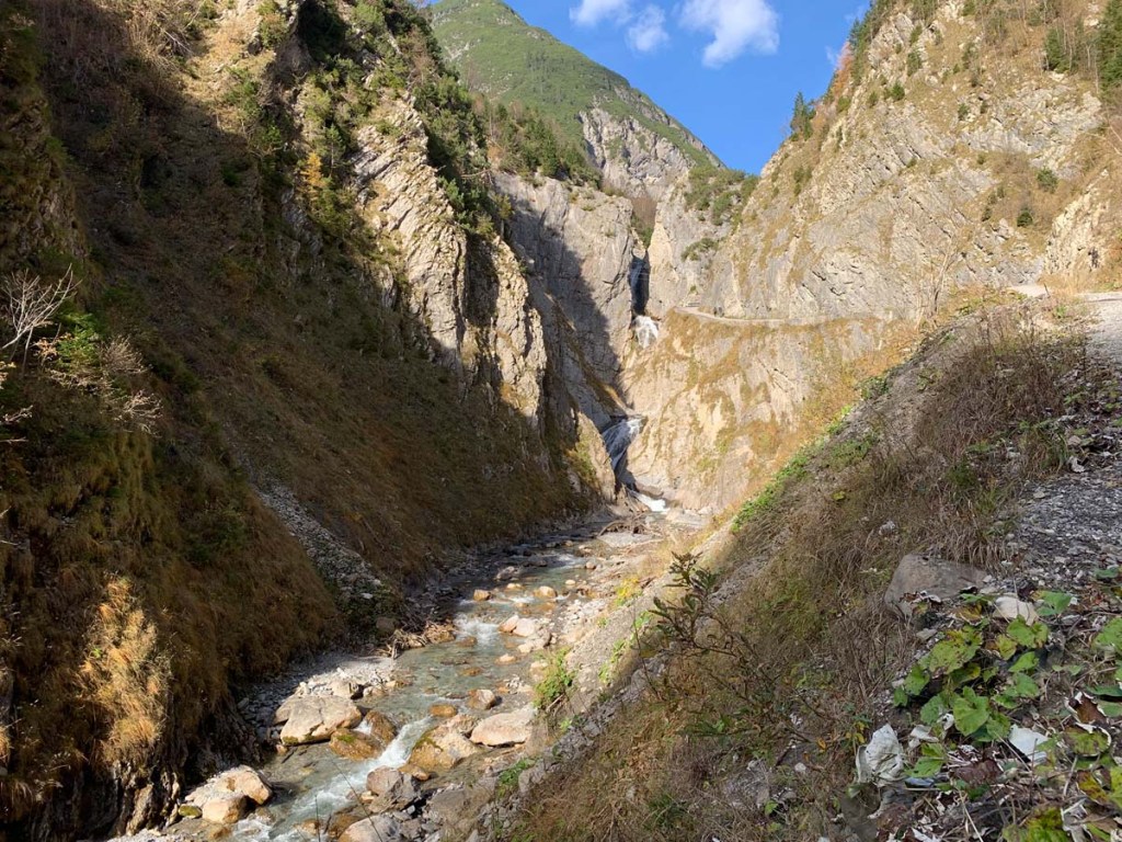 Kurz vor der Hütte finden wir den Abstieg ins Halltal, der durch die Ladhüttenklamm führt und bei der ersten Ladhütte auf die Bergstraße gelangt.