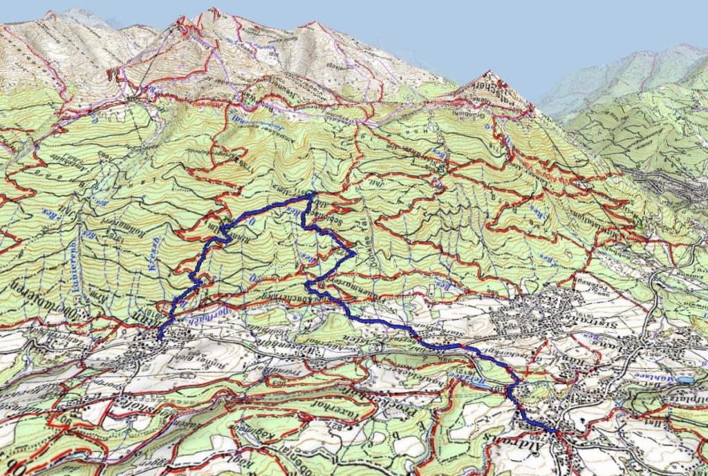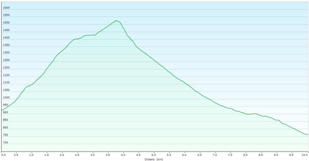 Tourendaten Gesamtdauer: 3:12 h Gesamtlänge: 9.92 km Höhenmeter: ∆ 608 m / ∇ 767 m