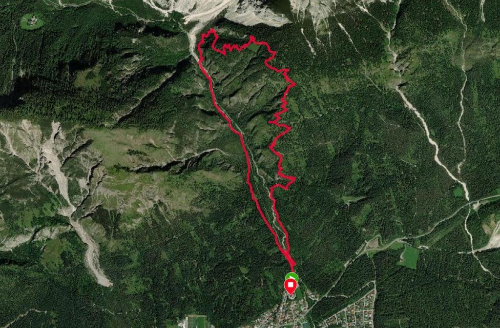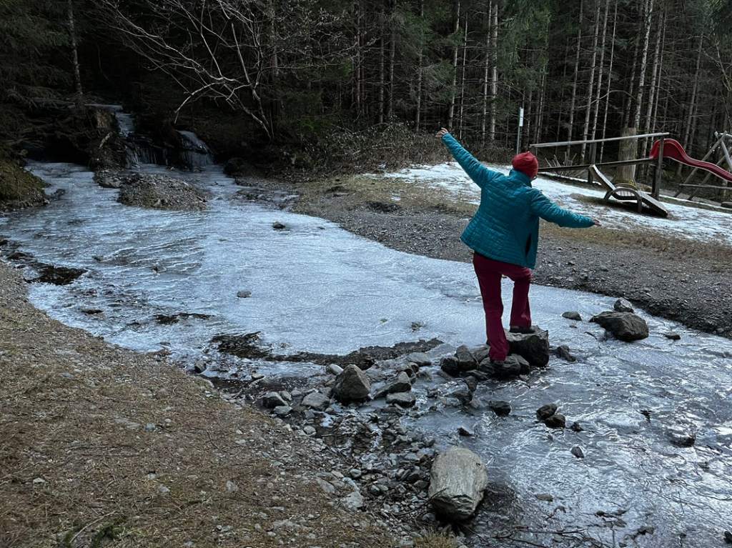 Gestern auf der Piste, heute auf der aperen Sonnenseite in Innsbruck… zur Zeit ist fast alles möglich. Wir wollen heute nochmals per Pedes auf die Walder Alm. Wir parken in Sankt Michael (Gnadenwald), bei einem Privathaus und spazieren über erst kleine Wege am Klammbach entlang.