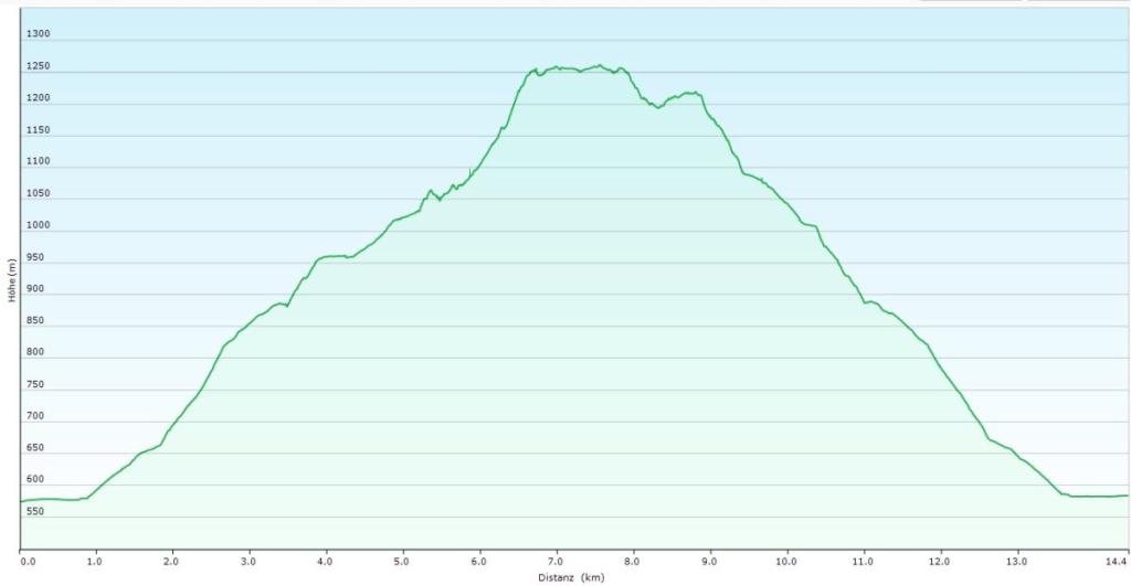 Tourendaten Gesamtdauer: 4:11 h Gesamtlänge: 14,30 km Höhenmeter: △▽ 771 m