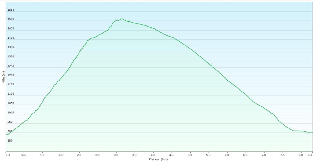 Tourendaten Gesamtdauer: 2:36 h Gesamtlänge: 8,26 km Höhenmeter: ∆∇ 620 m