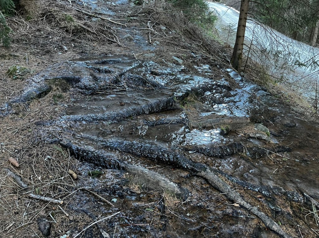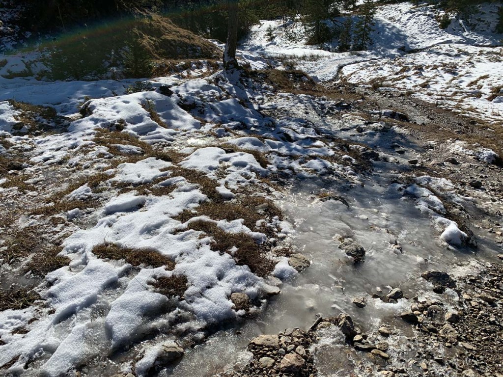 Es ist relativ viel Wasser vorhanden, das wahrscheinlich vom Schmelzwasser des letzten kurzen Schneefalls herrührt.