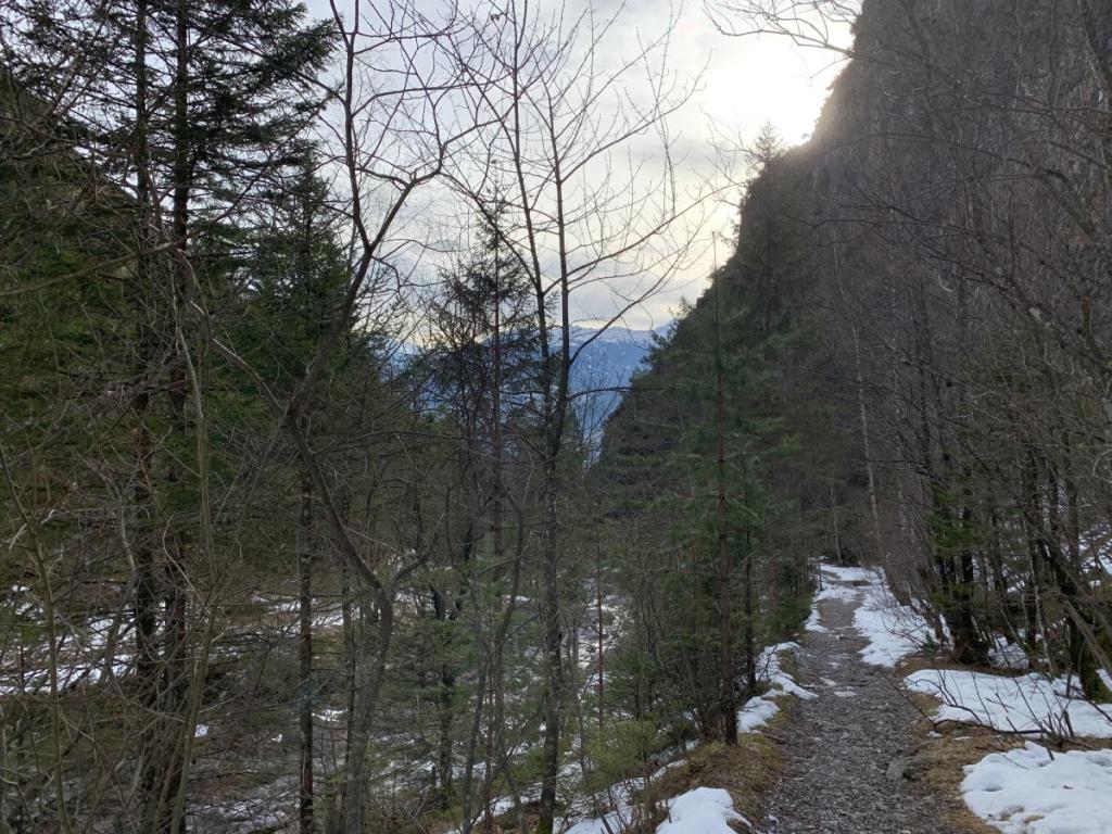 Der schöne Blick ins Halltal begeistert mich immer wieder, der Schnee ist sichtbar, zumindest auf den Südlagen, in die Höhe verdrängt worden.