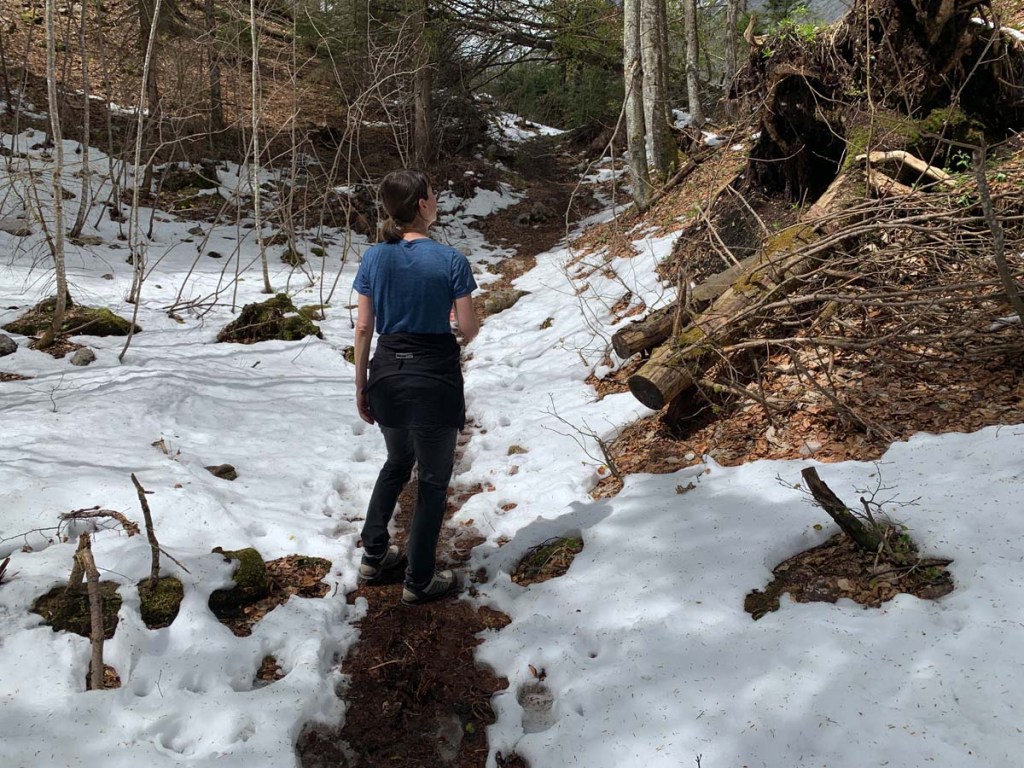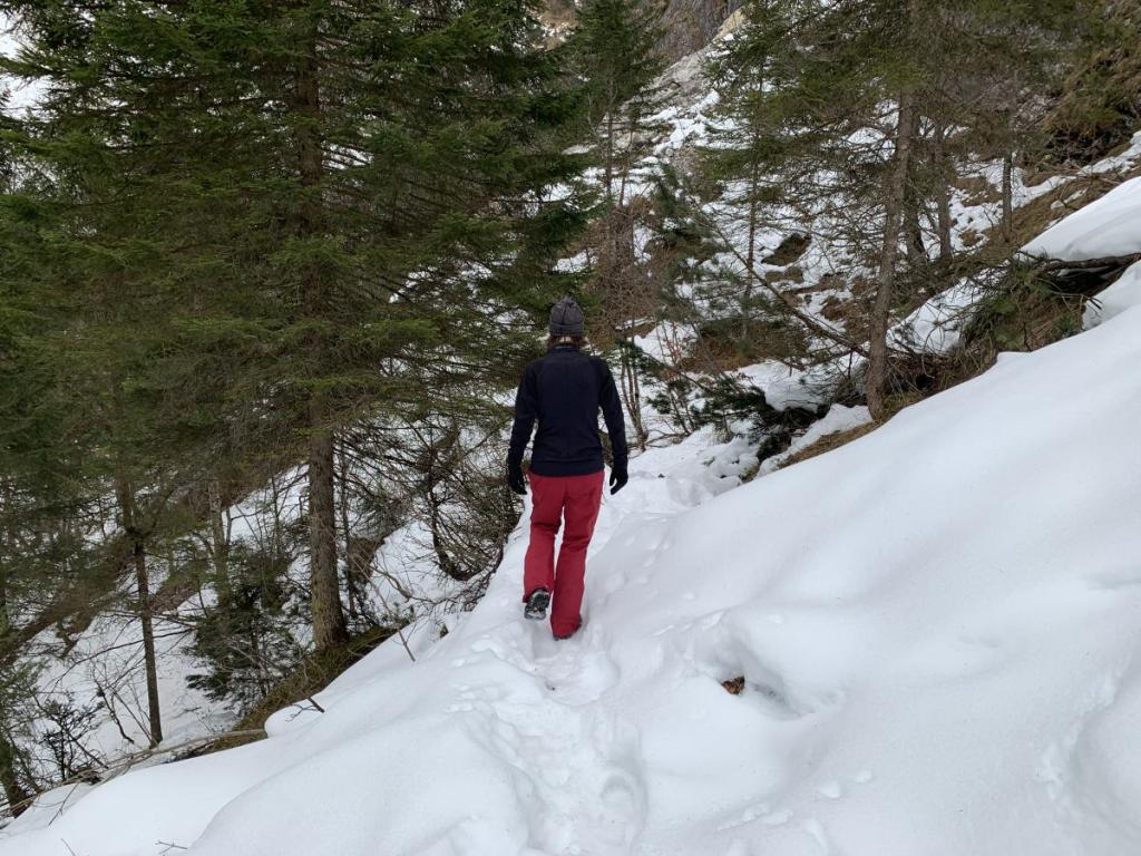 Über den Fluchtsteig steigen wir höher und höher, und der Schnee lässt wirklich auf sich warten!