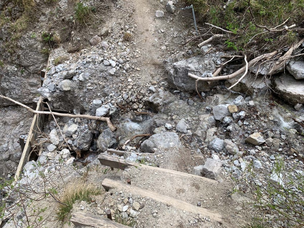An der Ladhütte wechseln wir wieder auf den angenehmeren Fluchtsteig, der uns zügig zum Ausgangspunkt bringen wird.