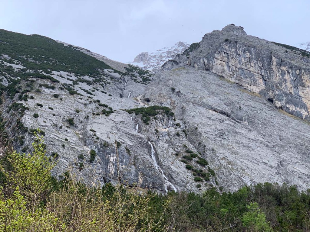 An dieser entlang wandern wir bis zur zweiten Ladhütte. Vom Bettelwurfmassiv fließt einiges an Wasser ab, den tollen Wasserfall im Bild habe ich in dieser Form noch nicht gesehen.