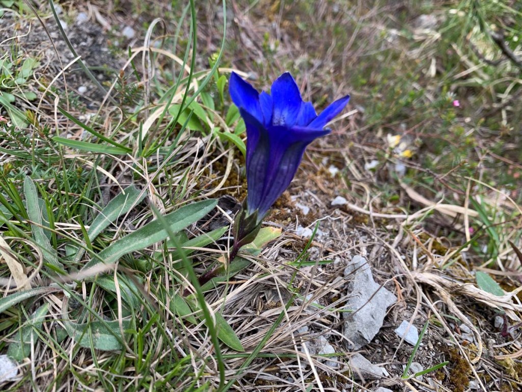 Unterwegs entdecken wir unseren ersten Enzian dieses Jahr! Je tiefer wir kommen, desto mehr entwickelt sich die Natur.