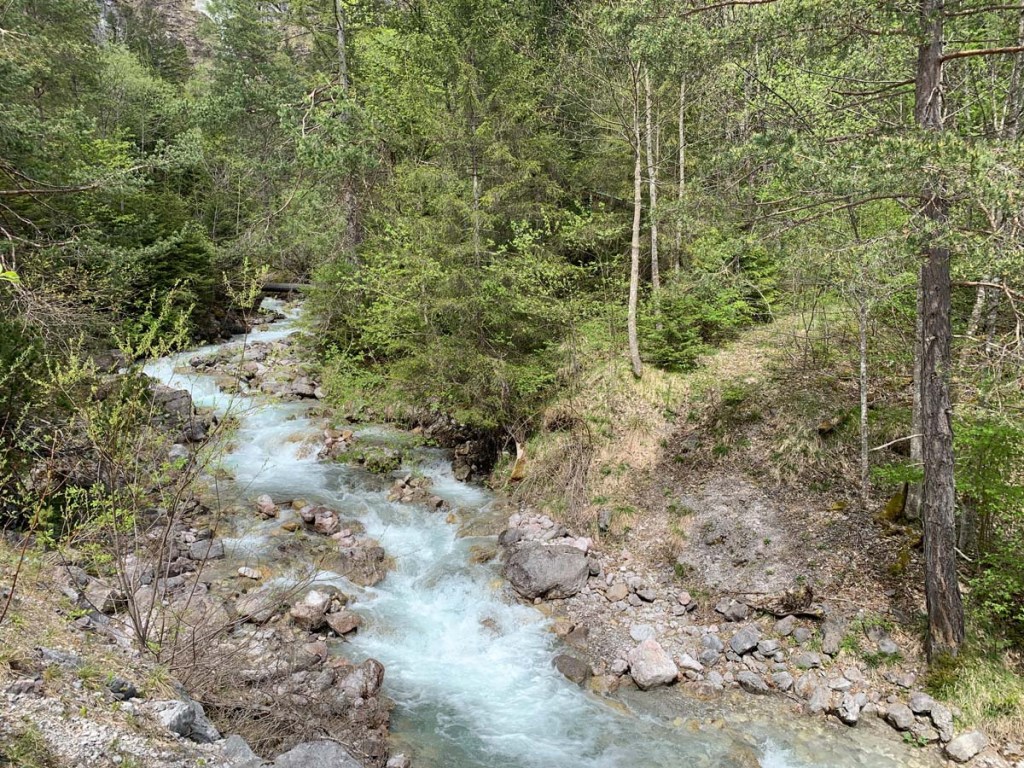 Wir hören den Finelebach schon lange rauschen, schließlich erreichen wir den Talgrund und den schönen Wasserlauf.