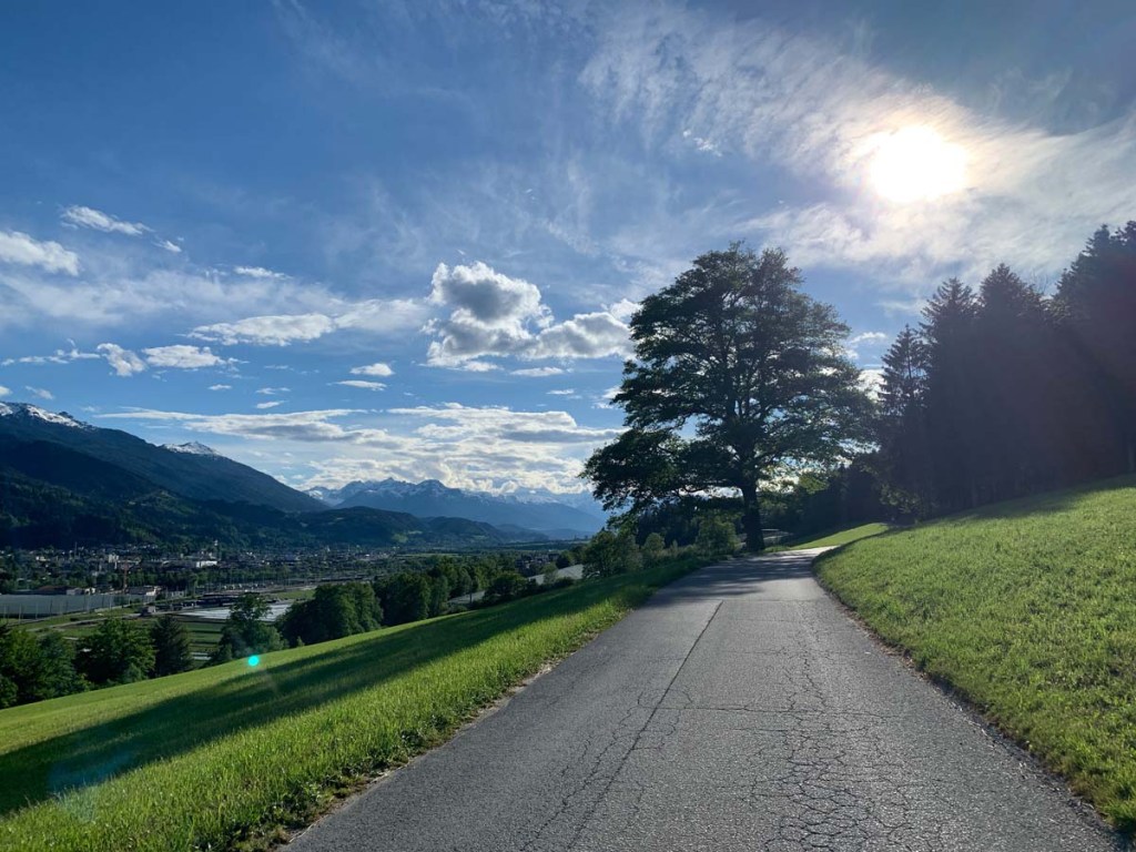 Vom Herzsee spazieren wir schlussendlich über die Dörferstrasse hinab ins Dorfzentrum von Aldrans! So schließt sich eine gemütliche Rund in der Umgebung von Aldrans.