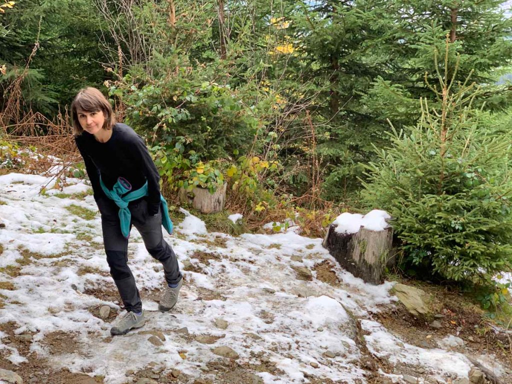 Heute heißt es schon ein wenig aufpassen, dass der Schnee nicht aus Versehen in den Kragen rieselt!