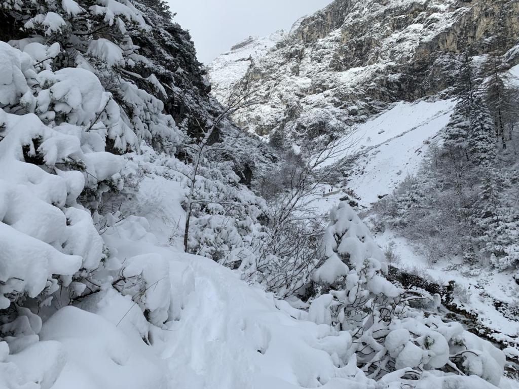 Immer wieder müssen wir stehenbleiben und die Schneepracht überall um uns herum bewundern.