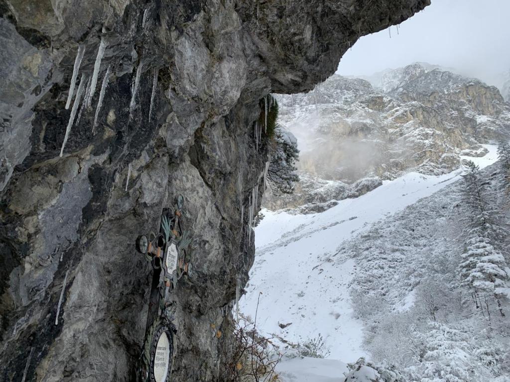 Schon bei der Anfahrt müssen wir feststellen, dass das Karwendel wohl von Frau Holle wohlwollend geküsst worden ist. Hier liegt um einiges mehr Schnee als im Mittelgebirge oder in Innsbruck. Schön schaut es hier aus…