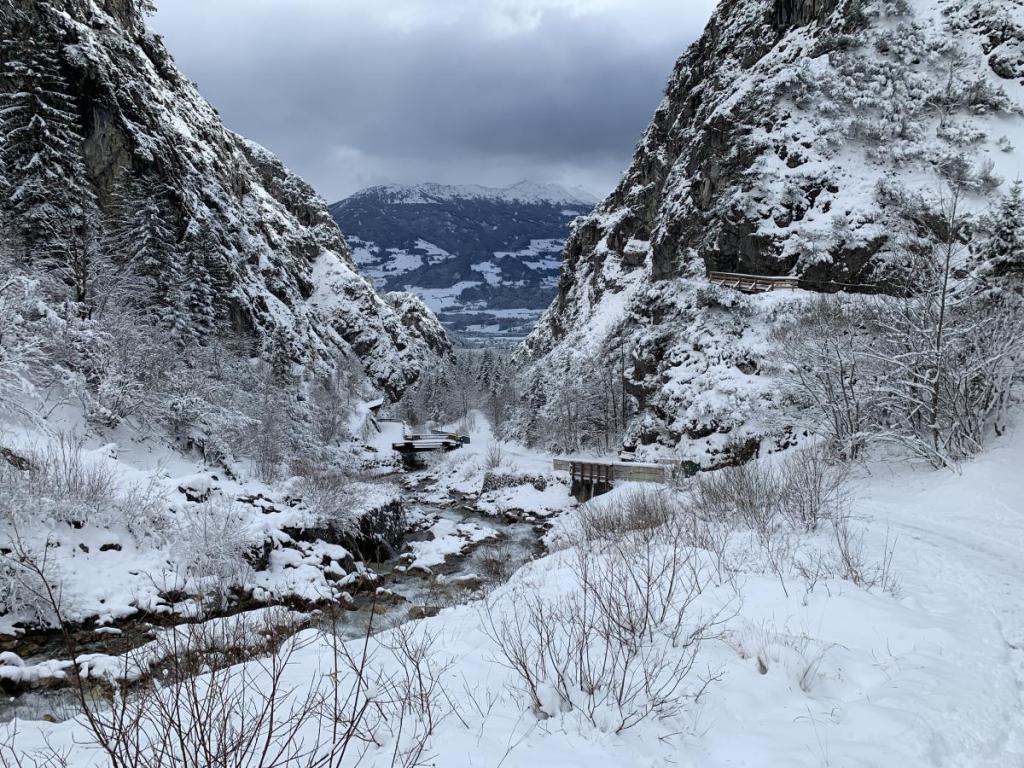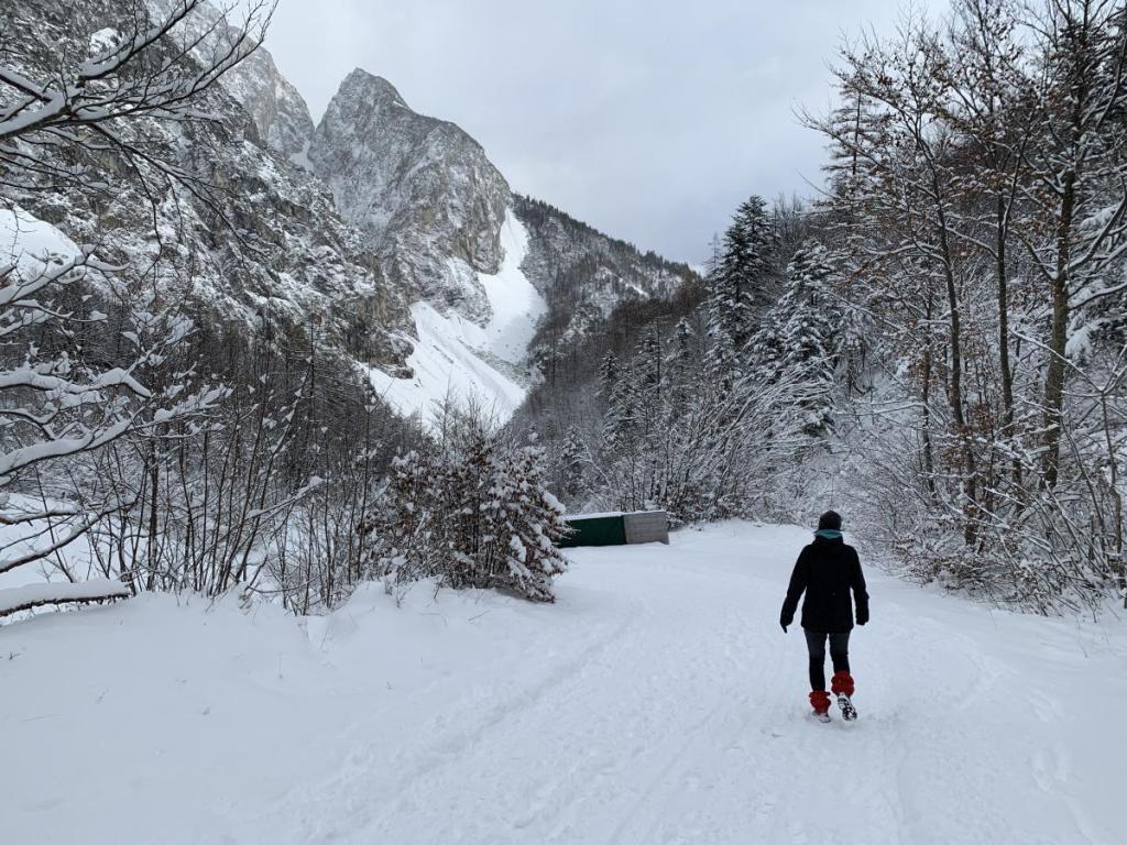 Der Weg ist klarerweise schon angespurt, so schnell waren wir heute nicht. Und das Halltal ist schon lange kein Geheimtipp mehr, das müssen wir heute wieder feststellen. Immer wieder begegnen uns andere Spaziergänger.