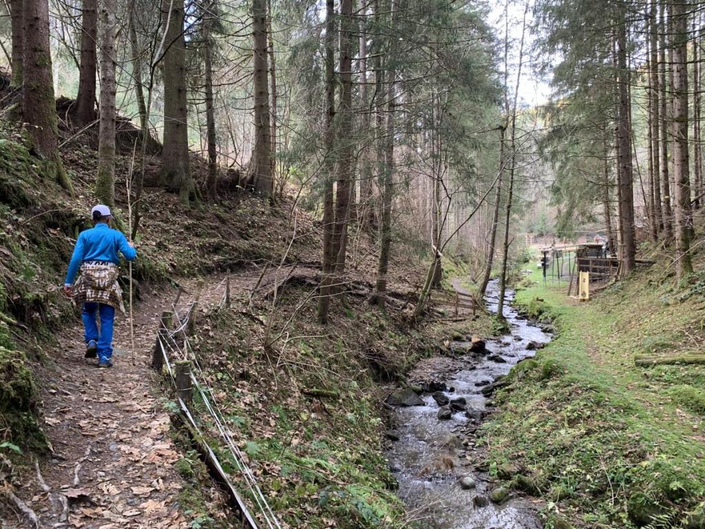 Der Weg zweit nicht von ungefähr „7-Täler-Weg“, es sind wirklich genau so viele kleinere und größere Täler zu überschreiten. Eines der Schönsten fällt kurz vor dem Weg über einen tollen Wasserfall…