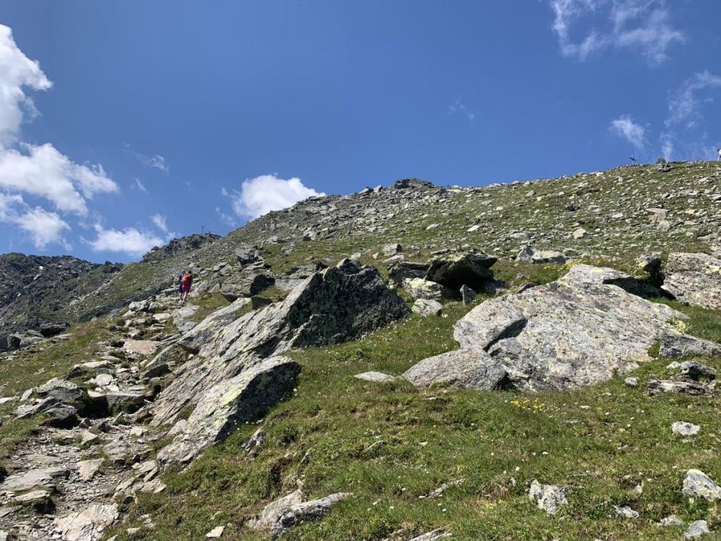 Vom Jöchl aus sehen wir schon unser Tagesziel, das Koflerjoch. Eine feine Gratwanderung ohne Schwierigkeiten, aber mit tollen Ausblicken führt uns immer näher zum Gipfel.