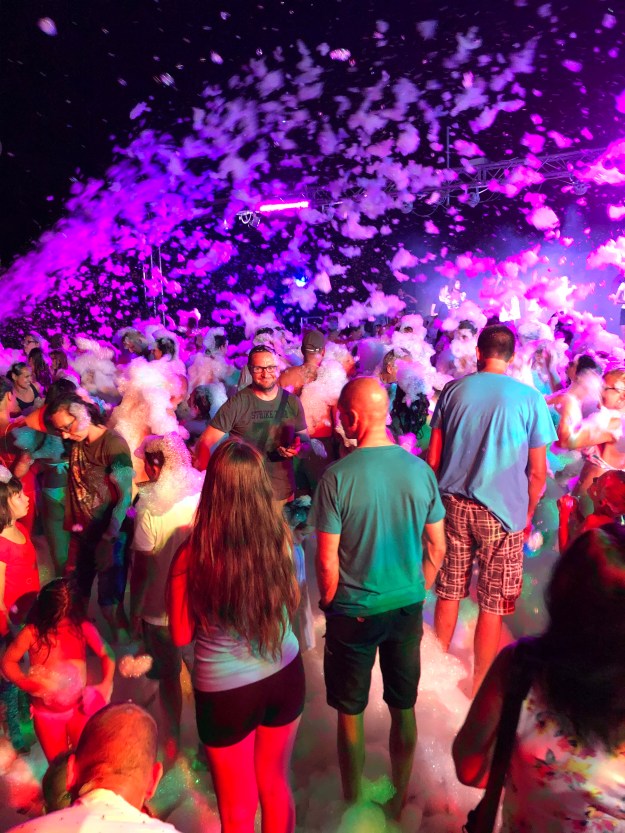 Am Abend war dann das Highlight für die Kinder. Wir sind erst in die Kinder-Disco, plötzlich ist Schaum im Spiel gewesen und die Kinder haben sich austoben können.