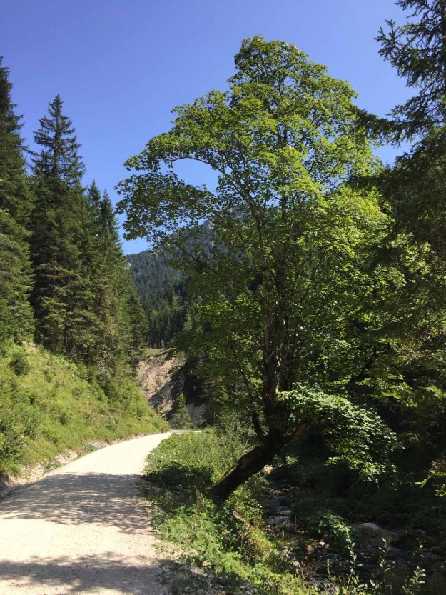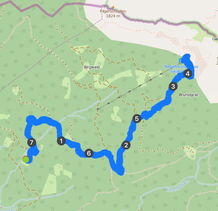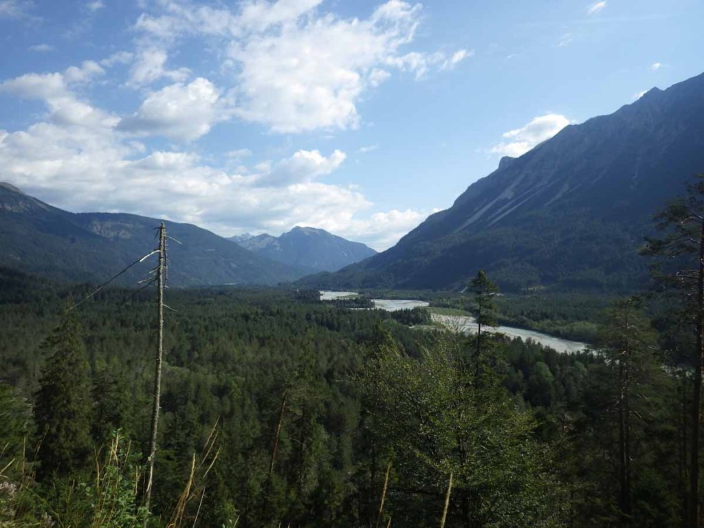Da ich nun allerdings Auto-los bin, muss ich erst mit dem Bus ins Lechtal fahren. Das verbinde ich dann noch mit einem kleinen Spaziergang von Elmen nach Häselgehr, denn dort liegt ein Geocache, den ich mir schon lange abholen will…
