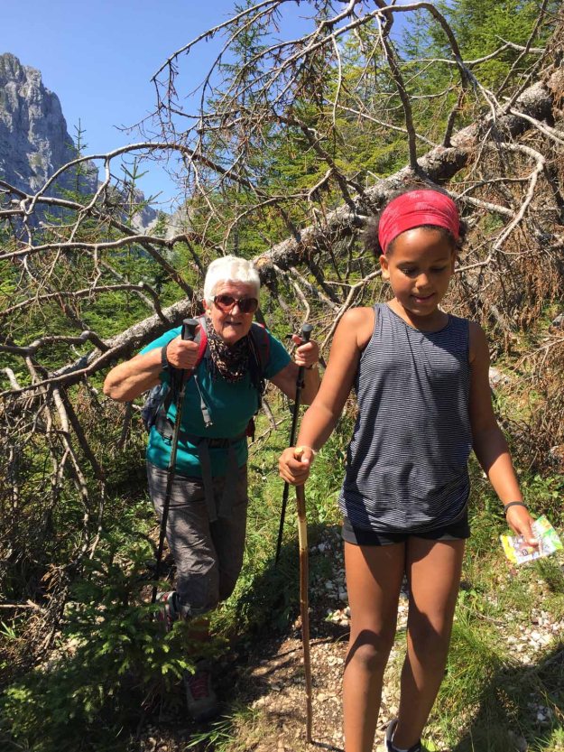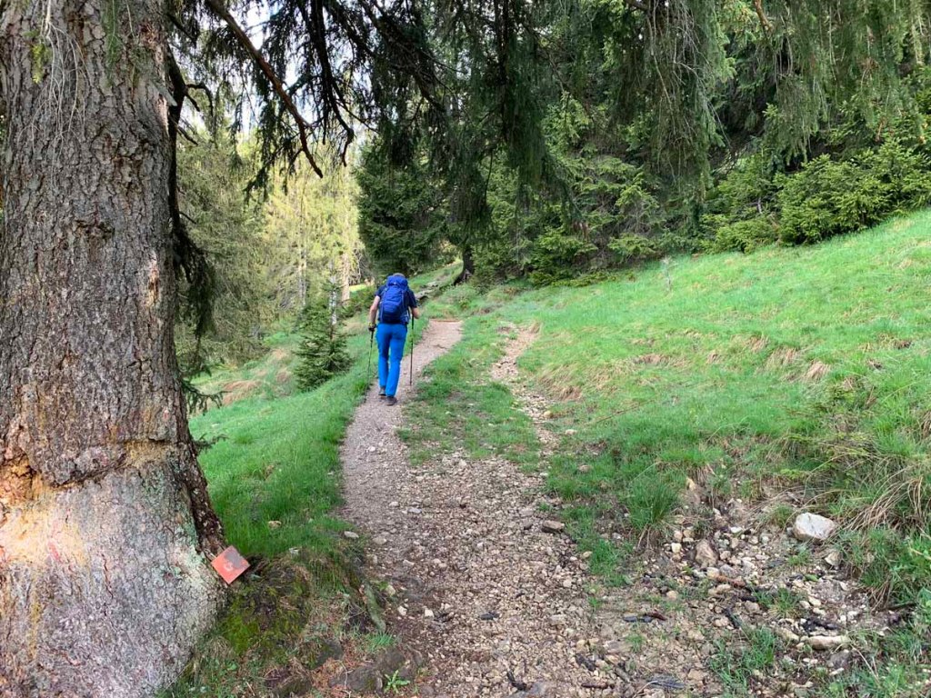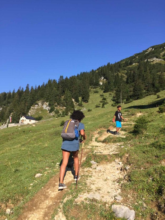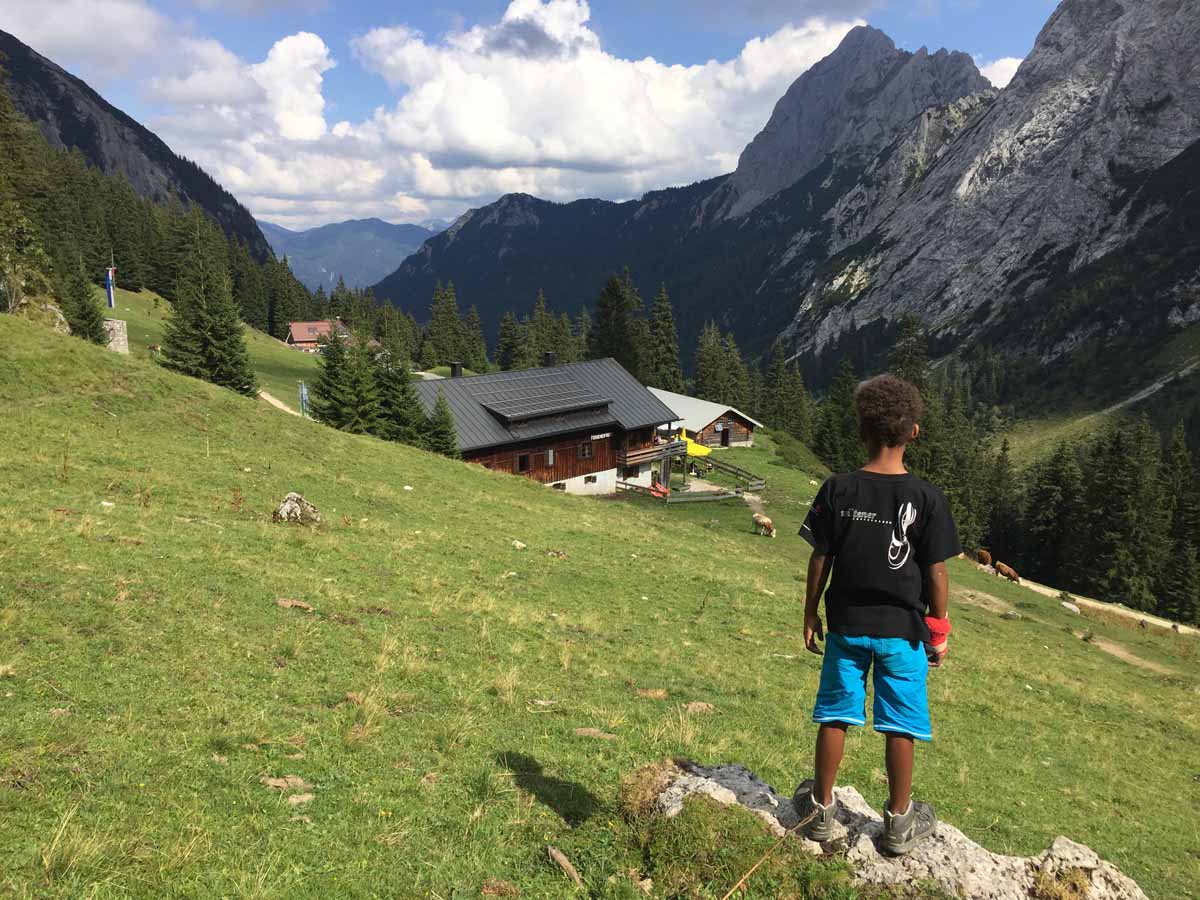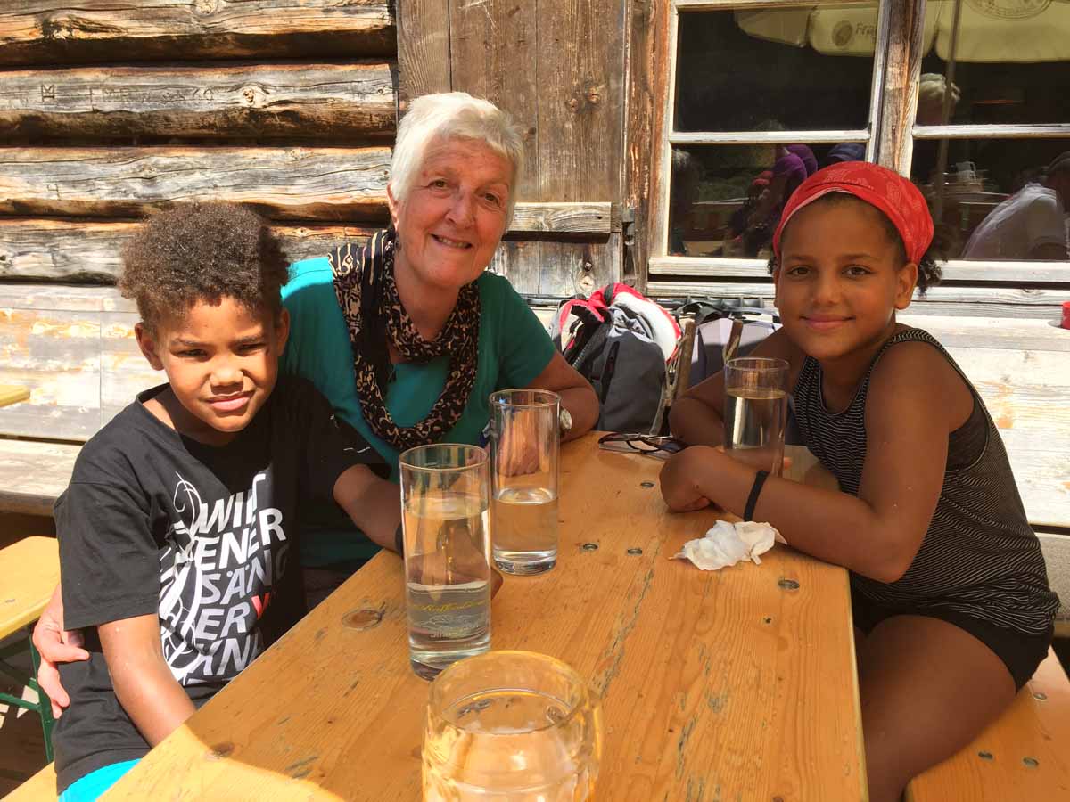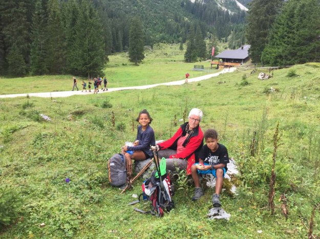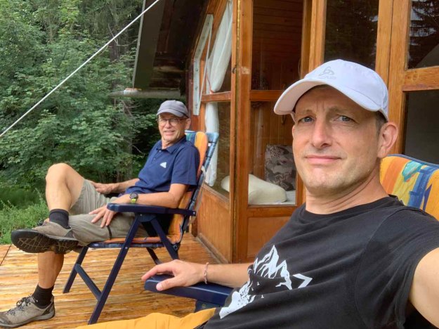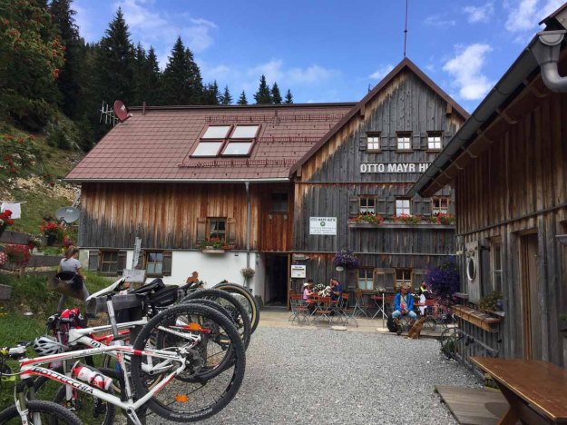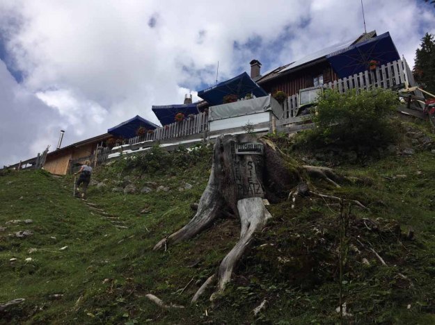 Den Aufstieg zur Hütte bewältigen wir in „Null-Komma-Nix“, dort gönnen wir uns eine kleine Rast auf der Terasse, die Sonne ist nun ein wenig hervorgekommen…