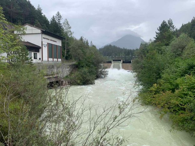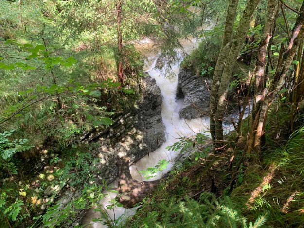 Am Vormittag sind wir nach Füssen in den Sportmarkt gefahren, auf dem Weg dorthin konnten wir die Wassermassen am Mangfall bewundern…