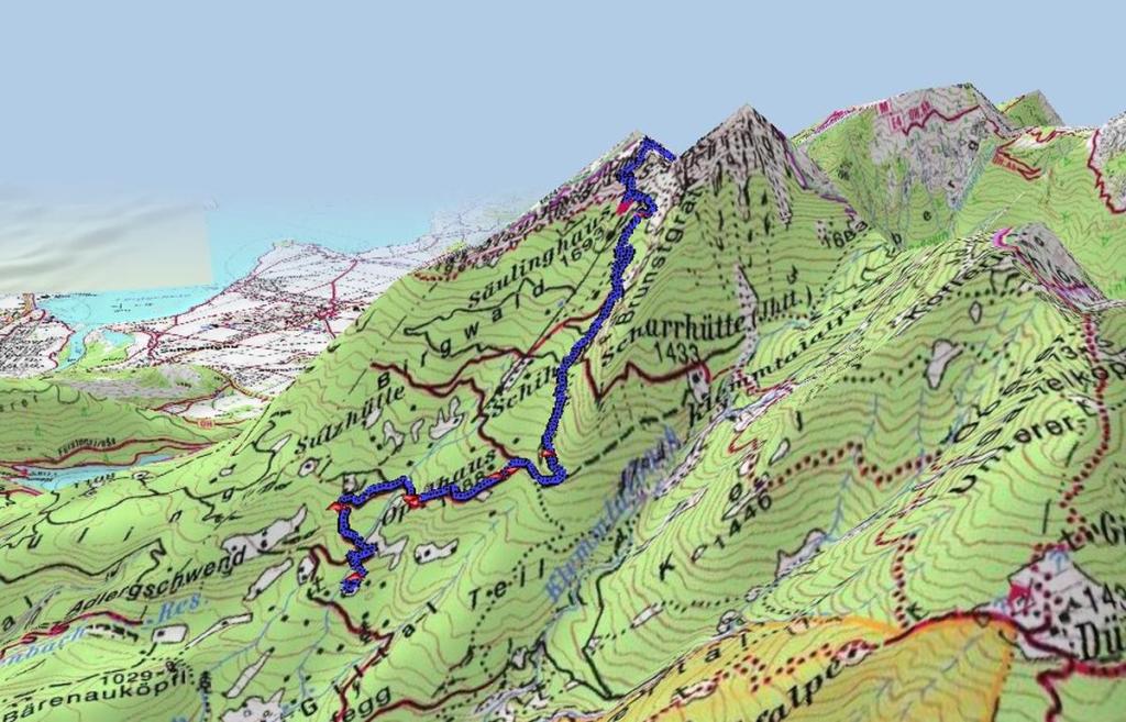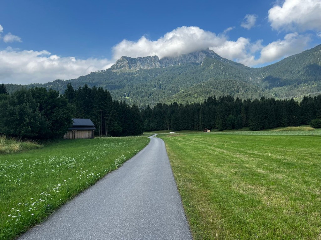 Auch der Säuling, den wir vorgestern bestiegen hatten, liegt im Zwickel vor uns.