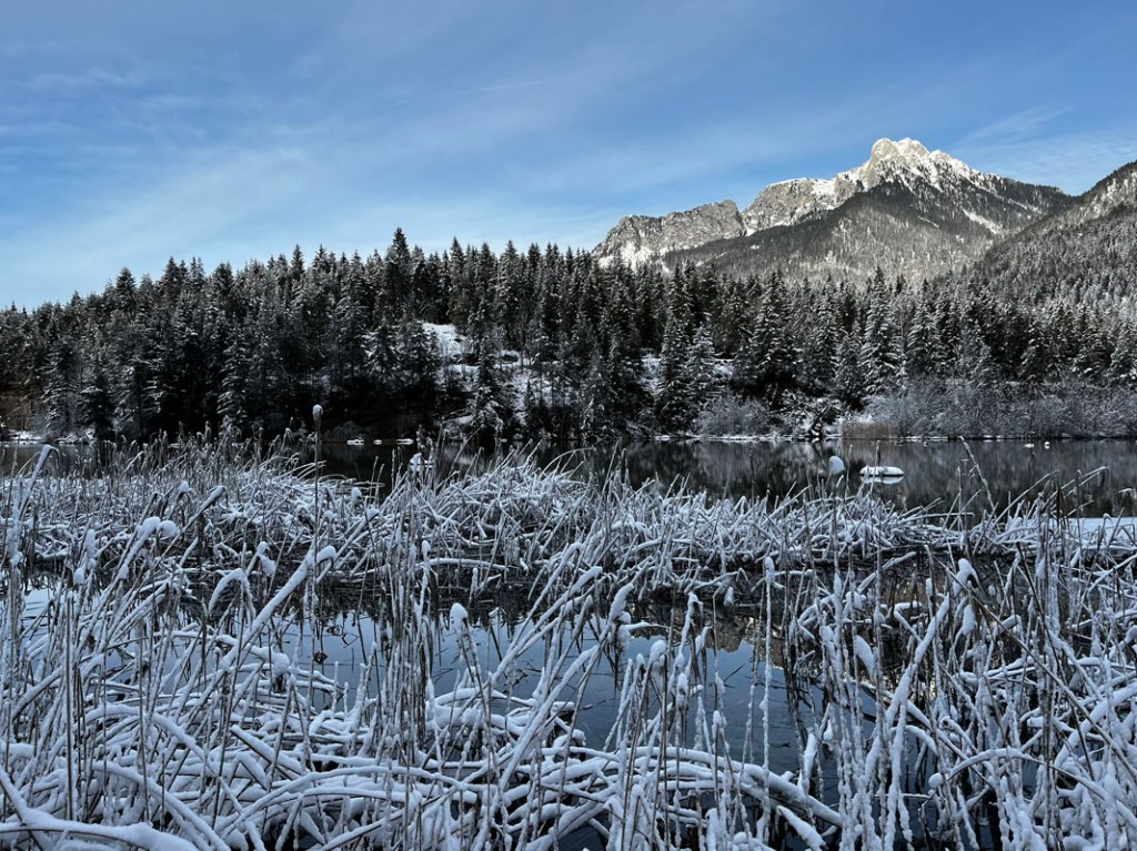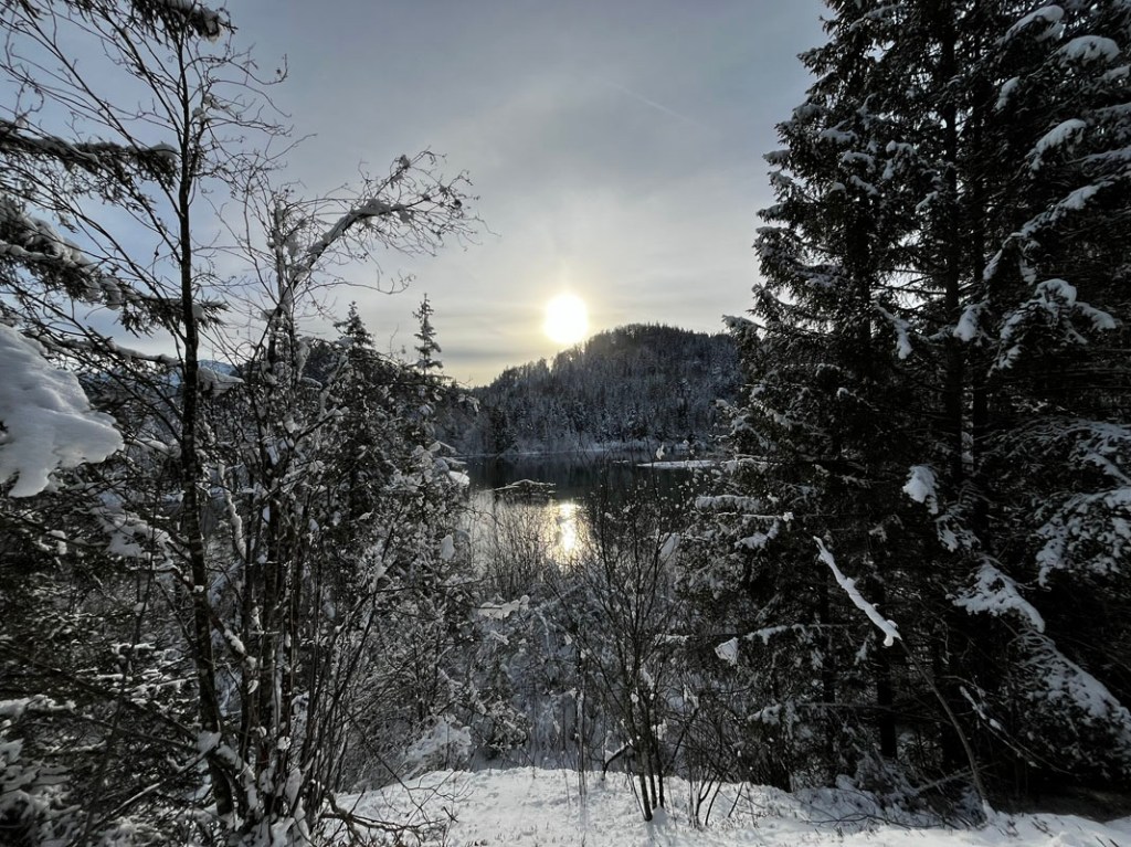 Manchmal fährt das Schiff der Planseeschifffahrt vorbei, dann klatschen ein paar Wellen ans Ufer. Ansonsten ist es unglaublich ruhig und entspannt.