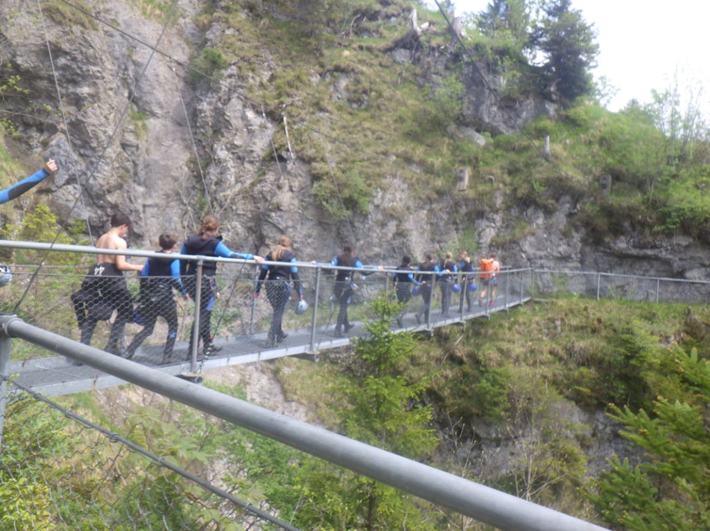 Mittlerweile mit neuer, moderner Brücke ausgestattet, so starten wir unsere Wanderung direkt am Camping Seespitz.