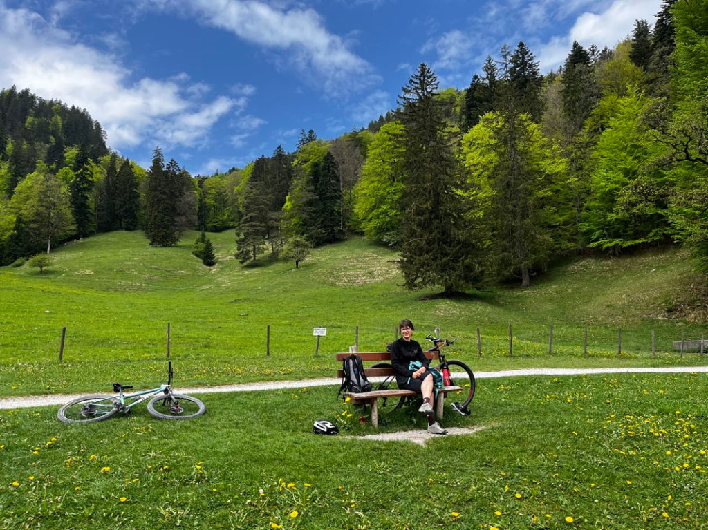 Von der Hütte fahren wir erst zur Mama, denn sie ist heute mit von der Partie… dann fahren wir zum Seespitz am Plansee.