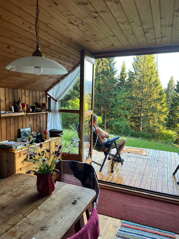 Das Auto steht direkt an der Anlegestelle, wir fahren wieder retour. Zuerst zu Mama nach Hause, dann weiter auf die Hütte. Es ist noch früh am Tag, daher haben wir noch genügend Zeit, die Sonne und die Gemütlichkeit der Veranda zu genießen.