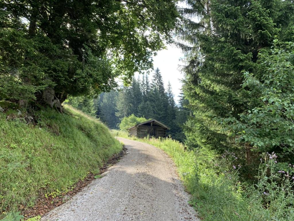 Wir kehren noch kurz bei der Hütte ein, trinken ein Bier und Kaffee, Essen eine Kleinigkeit und räumen zusammen. Dann spazieren wir weiter ins Tal, zum Auto. Eine feine Zeit auf der Hütte neigt sich dem Ende zu, wir kommen hoffentlich bald wieder…
