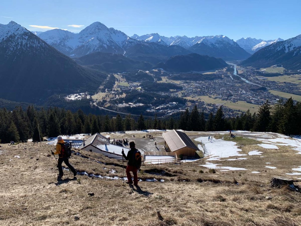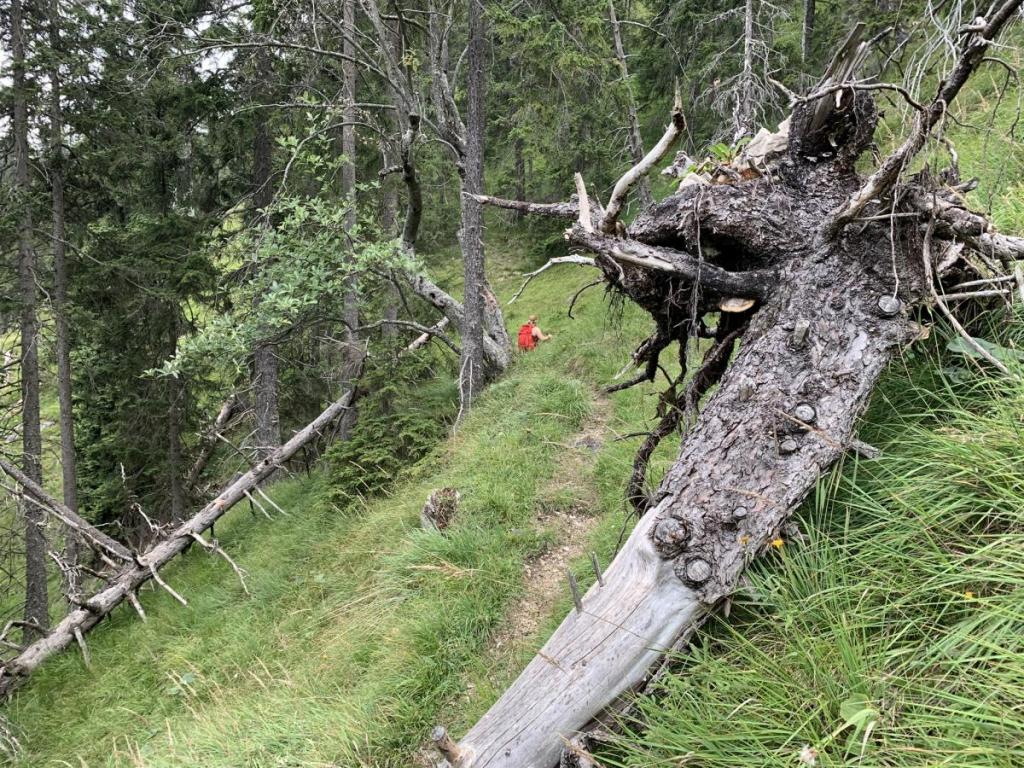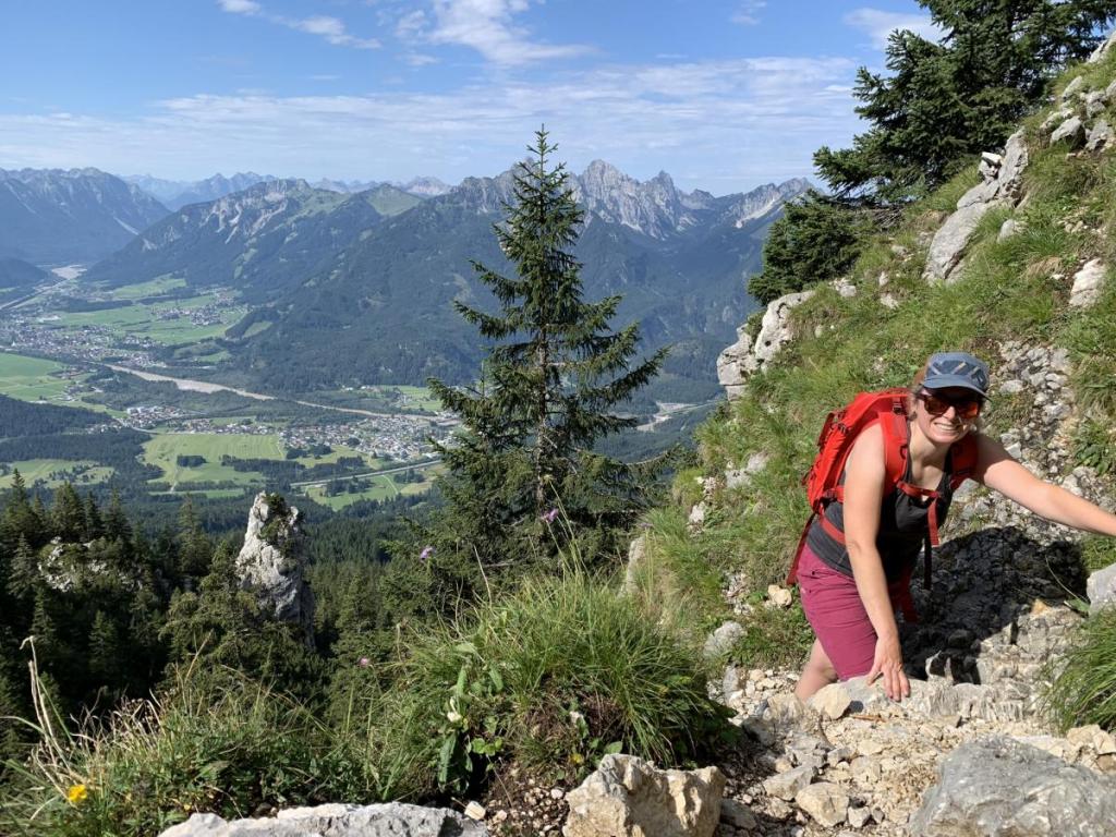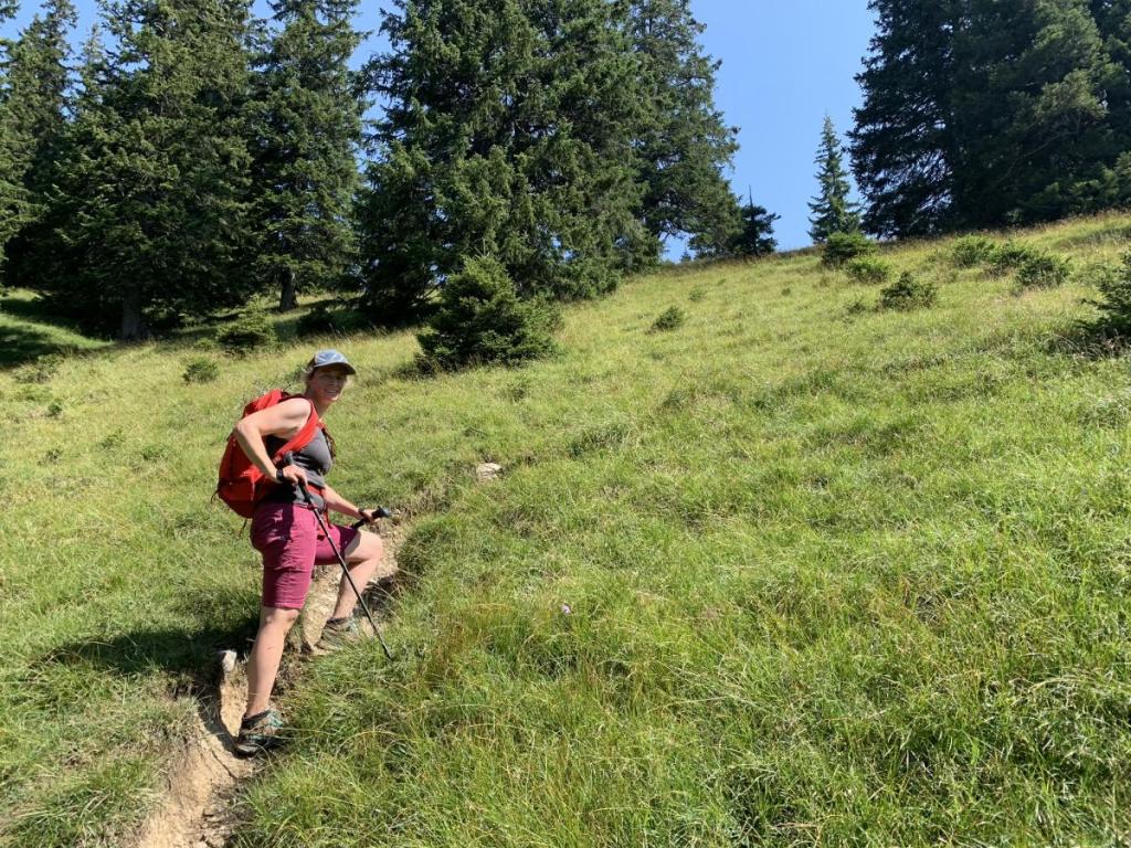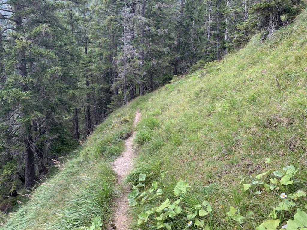 Nach ausgiebiger Rast wandern wir über den Säulingsteig zurück zu Hütte.