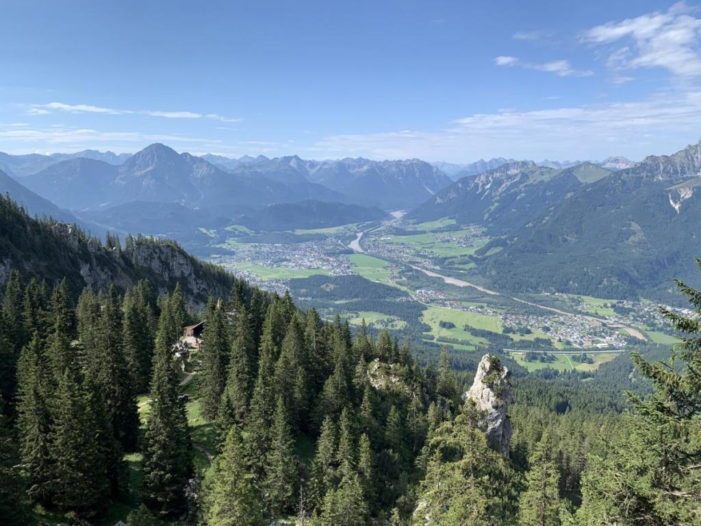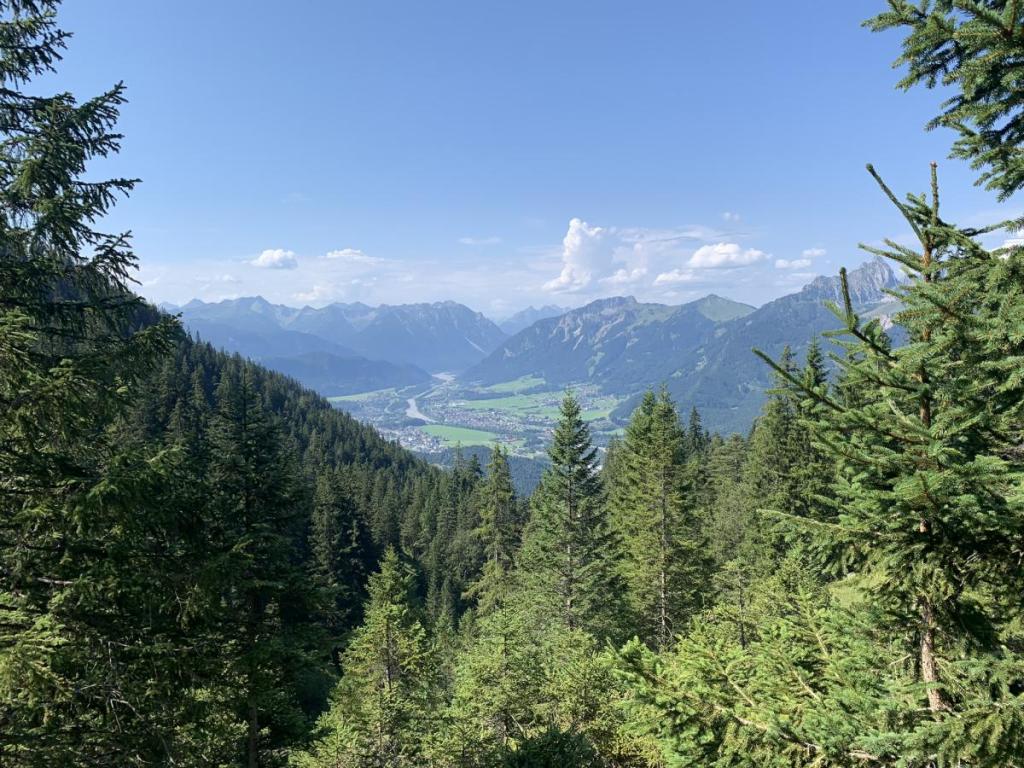 An der Stelle, die vorher noch den Lechtalblick mit Wolken versperrt hat sehen wir jetzt den Lech und das untere Lechtal.
