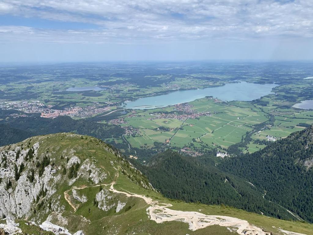 Auch der Ausblick ins Umland ist wunderschön, mit Hohenschwangau, dem Alp- und Schwanensee. Kein Wunder, dass der Königswinkel so bekannt und auch gut besucht ist.