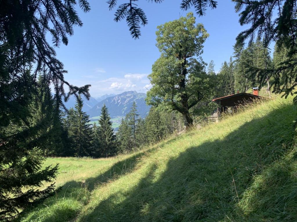 Wir wandern über den Steig zum Pflacher Älpele, einer ehemaligen kleinen Alm im Gemeindegebiet…