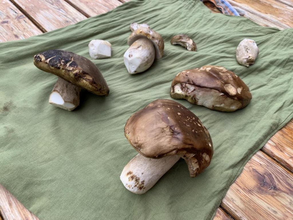 Die Pilzbeute ist heute gut, daher gibt es am Abend Nudeln mit Steinpilzen. Papa ist auch noch einen Sprung auf die Hütte gekommen und wir genießen das Luxusmenü gemeinsam!