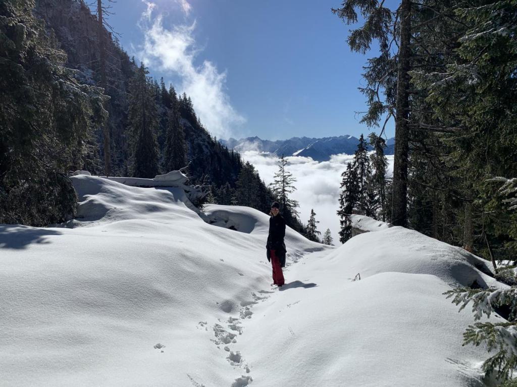 Der Blick ins Lechtal, kurz vor dem Säulinghaus liegt immer noch fest eingepackt unter Wolken…