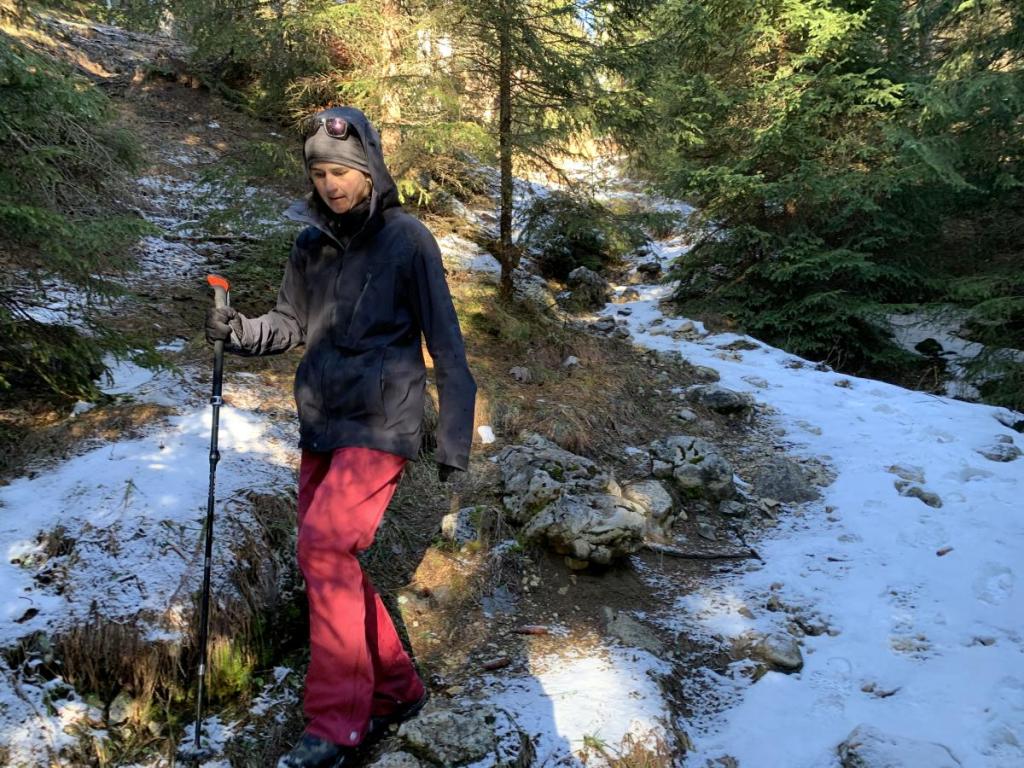 Hier wechselt der Weg nun häufig ab, zwischen hoch-winterlich und fast schon sommerlich. An manchen Stellen kommt wohl den ganzen Winter keine Sonne zu, daher müssen wir an diesen Stellen auch aufpassen.