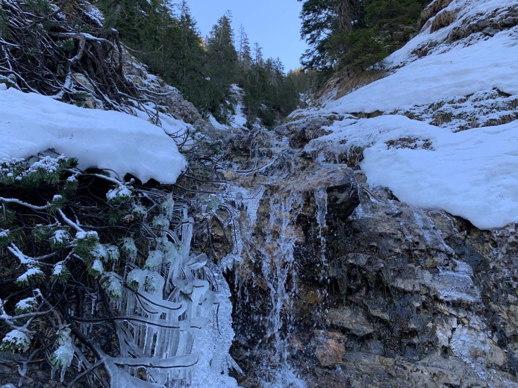 Speziell der Oberlauf des Lettenbaches liegt in „ewigem Dunkel“ und ist stark vereist. Wunderschön anzuschauen, beim Abstieg mit ein wenig Vorsicht zu genießen