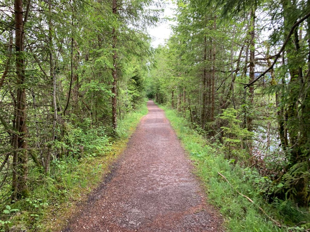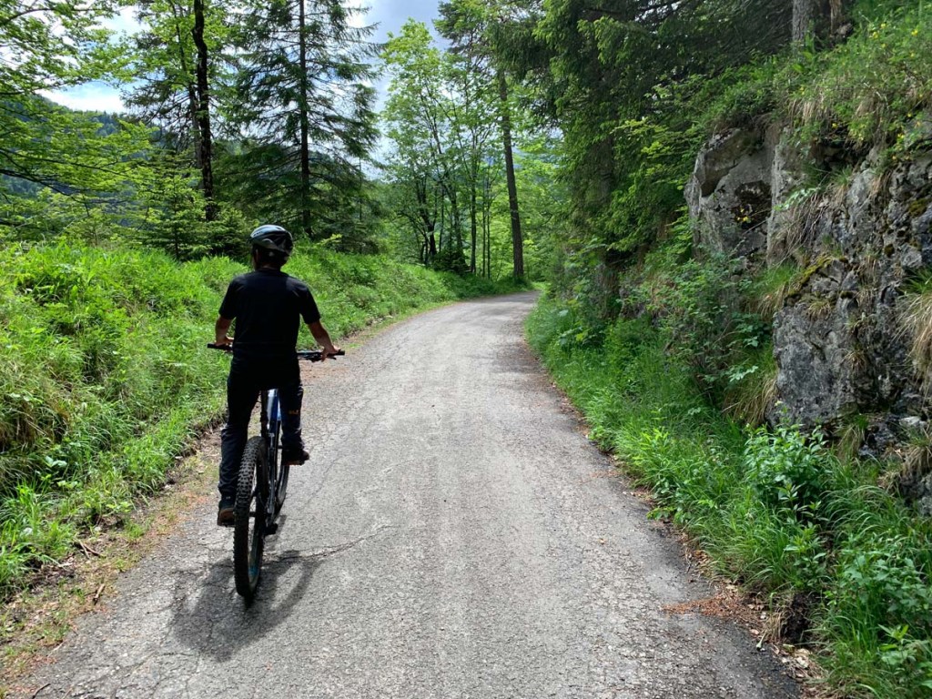 … und schließlich über einen spannenden Waldweg oberhalb der Hauptstraße in Richtung Schwangau.