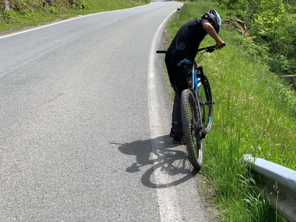 Das letzte Hindernis, der Kniepass auf unserem Weg wird auch gleichzeitig die größte Herausforderung. Kaum auf halber Höhe, meint Letu, dass er Luft am Reifen verliert. Kein Problem, denke ich mir, ich habe Flickzeug und einen Ersatzschlauch dabei. Leider ist das Flickzeug nicht komplett, kein Kleber mehr vorhanden, und der Schlauch passt auch nicht… Oje!