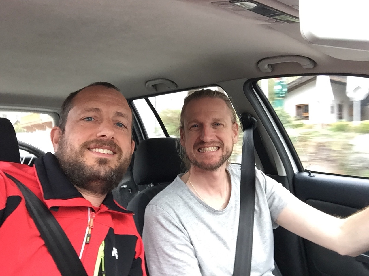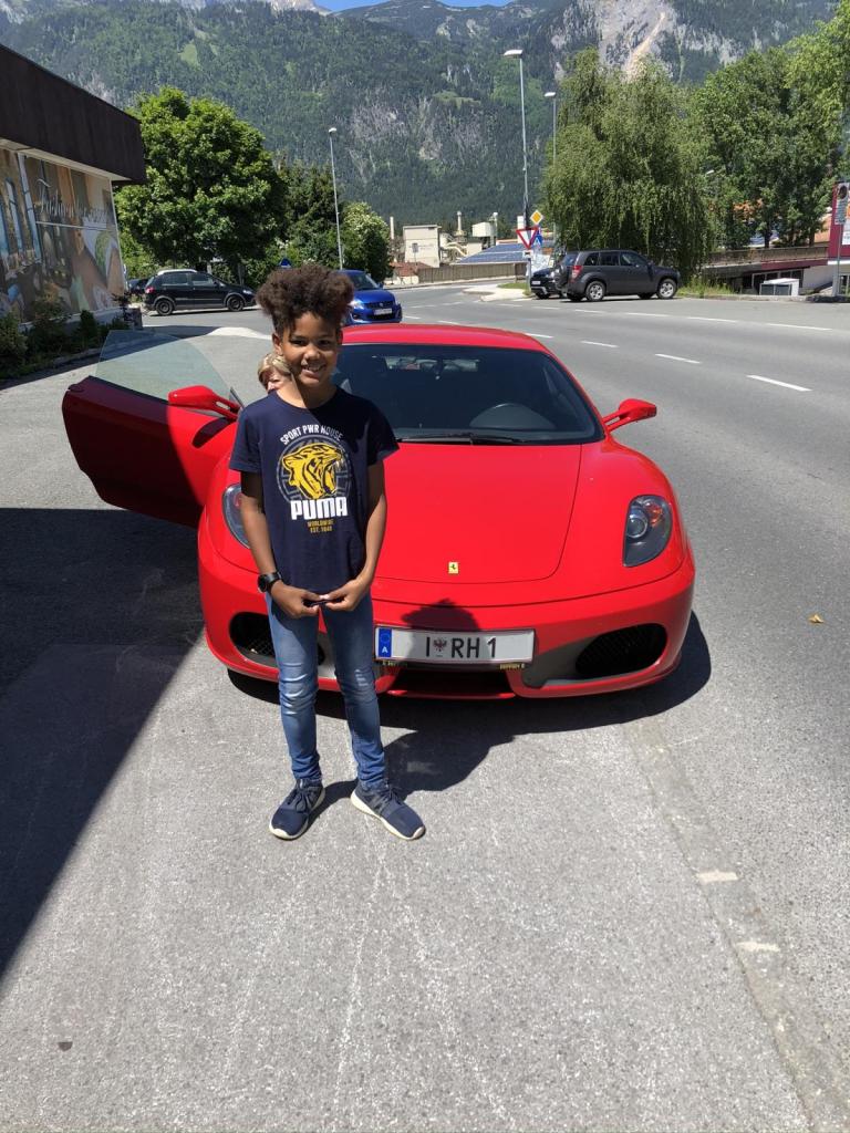 Der Fahrer winkt uns zu, ob wir vielleicht wissen, wo das Gasthaus „so-und-so“ ist. Leider können wir nicht weiterhelfen, ich schaue am Handy nach. Letu bewundert derweilen das Sportfahrzeug. Ich frage dann einfach mal frech, ob ich ein Foto von Letu mit dem Auto machen kann. Da lacht der alte Fahrer und sagt: „Ja klar, will sich dein Bub ins Auto setzen“… wow, das ist mal was und Letu lacht über beide Ohren!