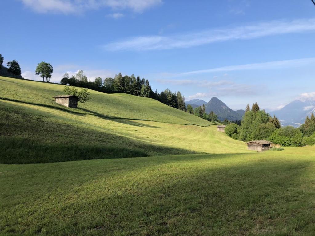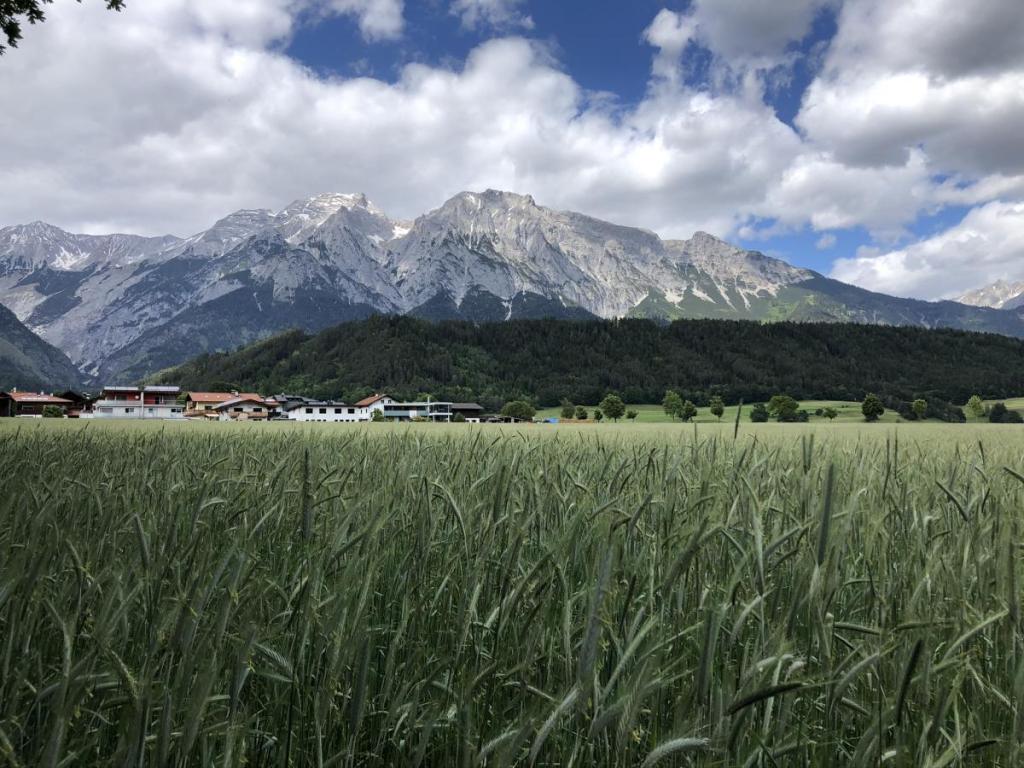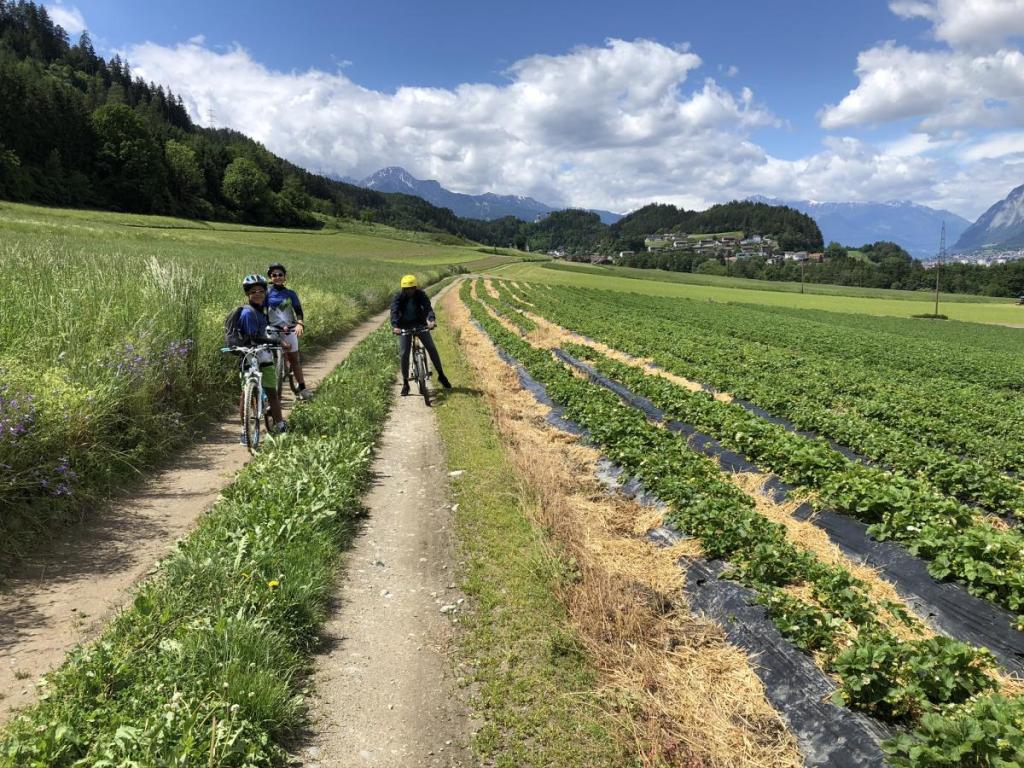 Unser erster Ort, den wir durchqueren ist schnell erreicht. Unsere Nachbargemeinde Ampass, mit den schönen, großen Erdbeerfeldern östlich der Ortschaft.