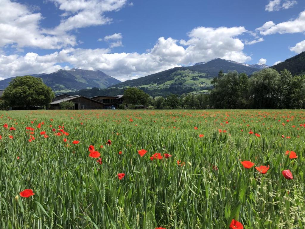 Vor kurzem noch ist eine Kaltfront durchs Land gezogen und hat die Berge in frischen, glänzenden Schnee gehüllt. Das tut dem Kontrast nur gut, im Tal blühen die Wiesen, auf den Bergen residiert noch der Winter!