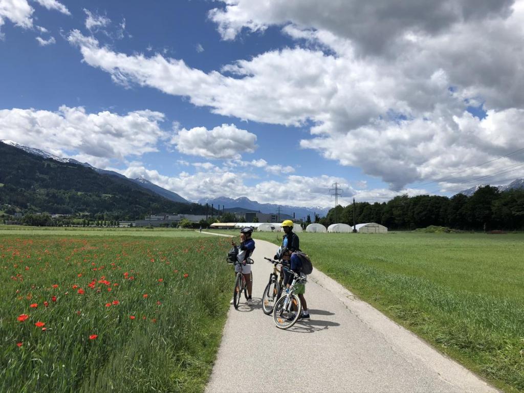 Von jetzt an ist entspanntes Radeln angesagt, mal darf die Sara voraus, mal der Letu. Obwohl das immer wieder eskaliert, schaffen wir es doch, zu Dritt in Wattens anzukommen.