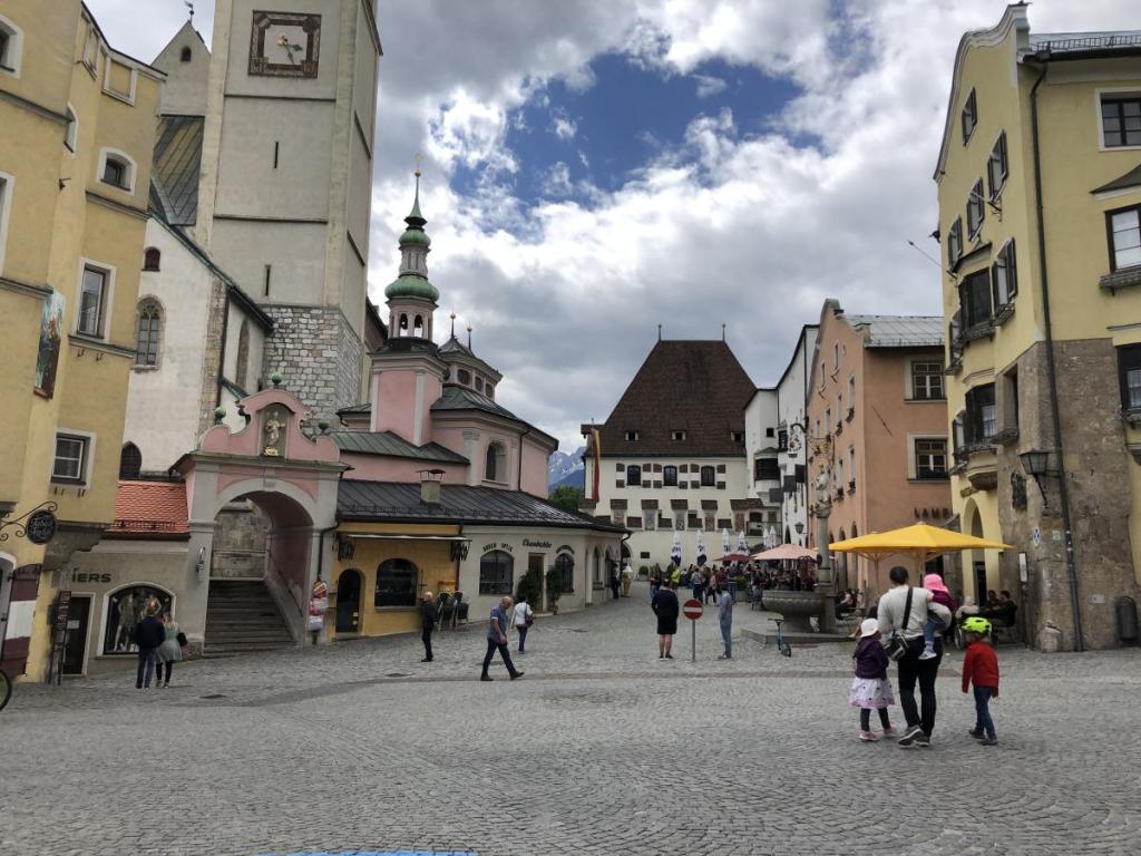 In der Stadt lernen wir ein paar bekannte Plätze kennen, und ein Unikum von Kitzbühel: Hier wurden die Häuser nicht zusammengebaut, damit ein ausbrechendes Feuer nicht auf die Nachbarhäuser übergreifen konnte. Daher ist Kitzbühel auch über die Jahrhunderte von großen Feuern verschont worden.