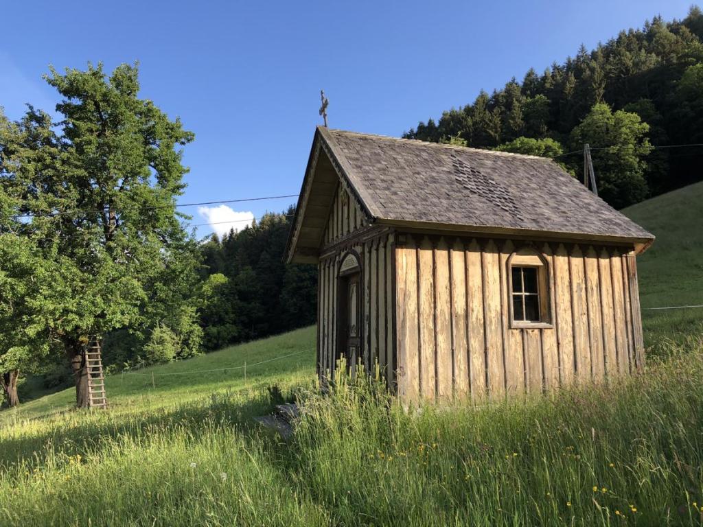 Morgenstund hat Gold im Mund. Und ganz angesehen davon ist heute der 70er meiner Mama!!! Also nochmals: „Zum Geburtstag viel Glück, zum Geburtstag viel Glück…“. Daher machen sich Mama und ich schon vor dem Frühstück auf, einen kleinen Spaziergang zu machen. Wieder machen wir uns auf zur kleinen Kapelle, die hier so schön im Talschluß gelegen ist.